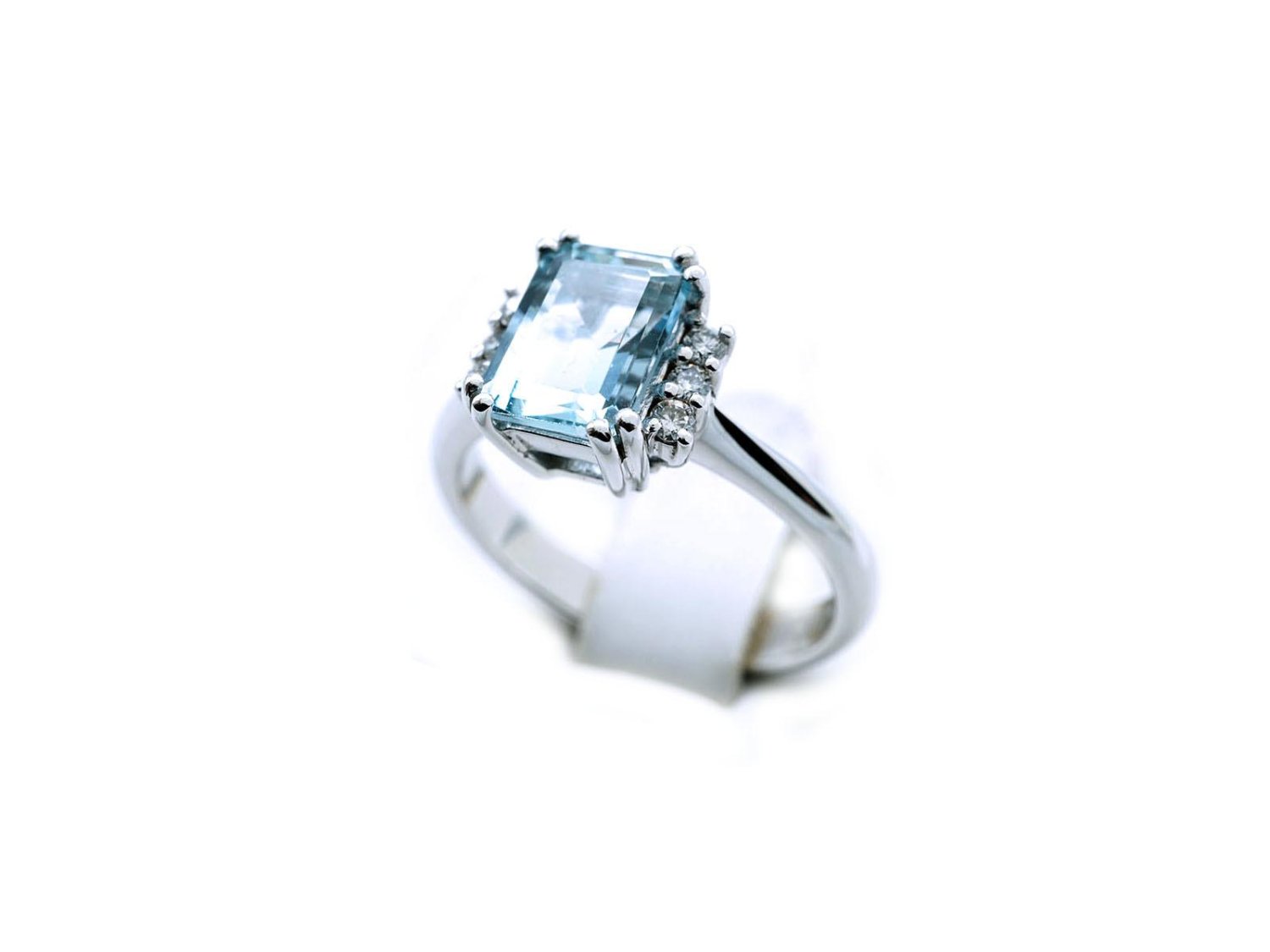 ANELLO in oro bianco 18Kt con diamanti ct 0.12 H Vs e acquamarina ct 1.35 Misura 14. NUOVO!
