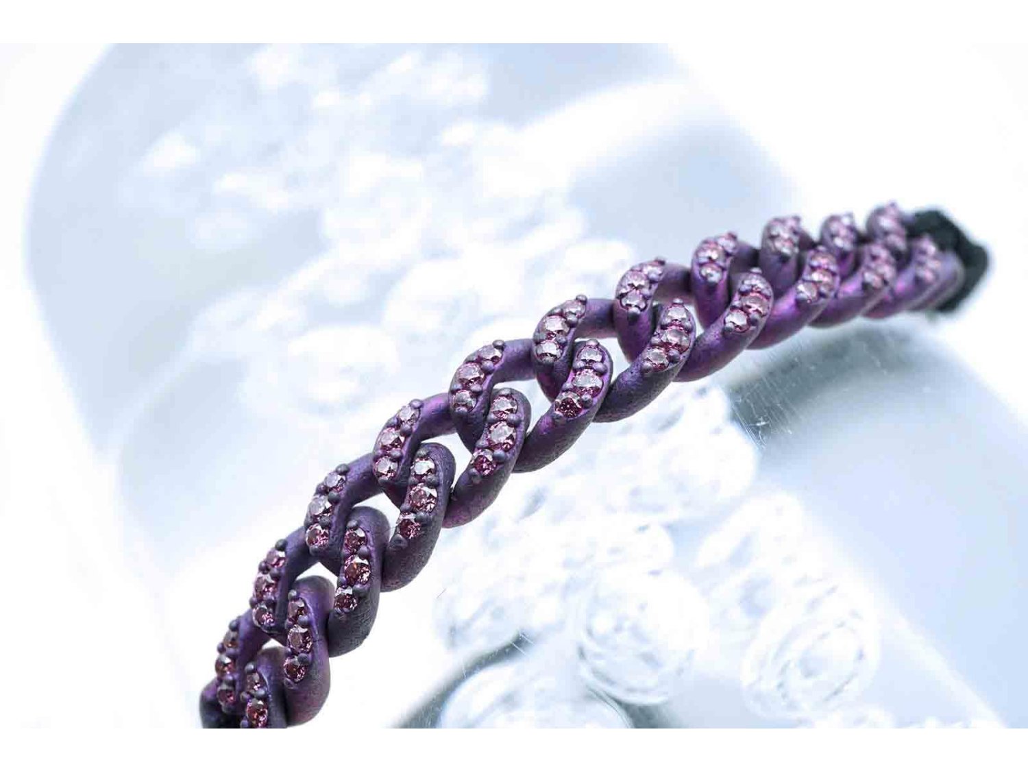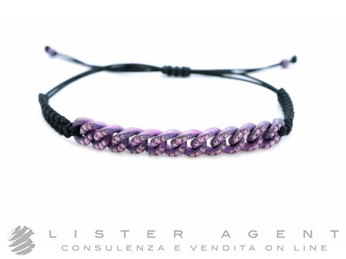 ANTEO bracciale in titanio e zaffiri rosa ct 0.60 con sagola marinara nera Ref. PP02BwTPRECRV-4A95. NUOVO!