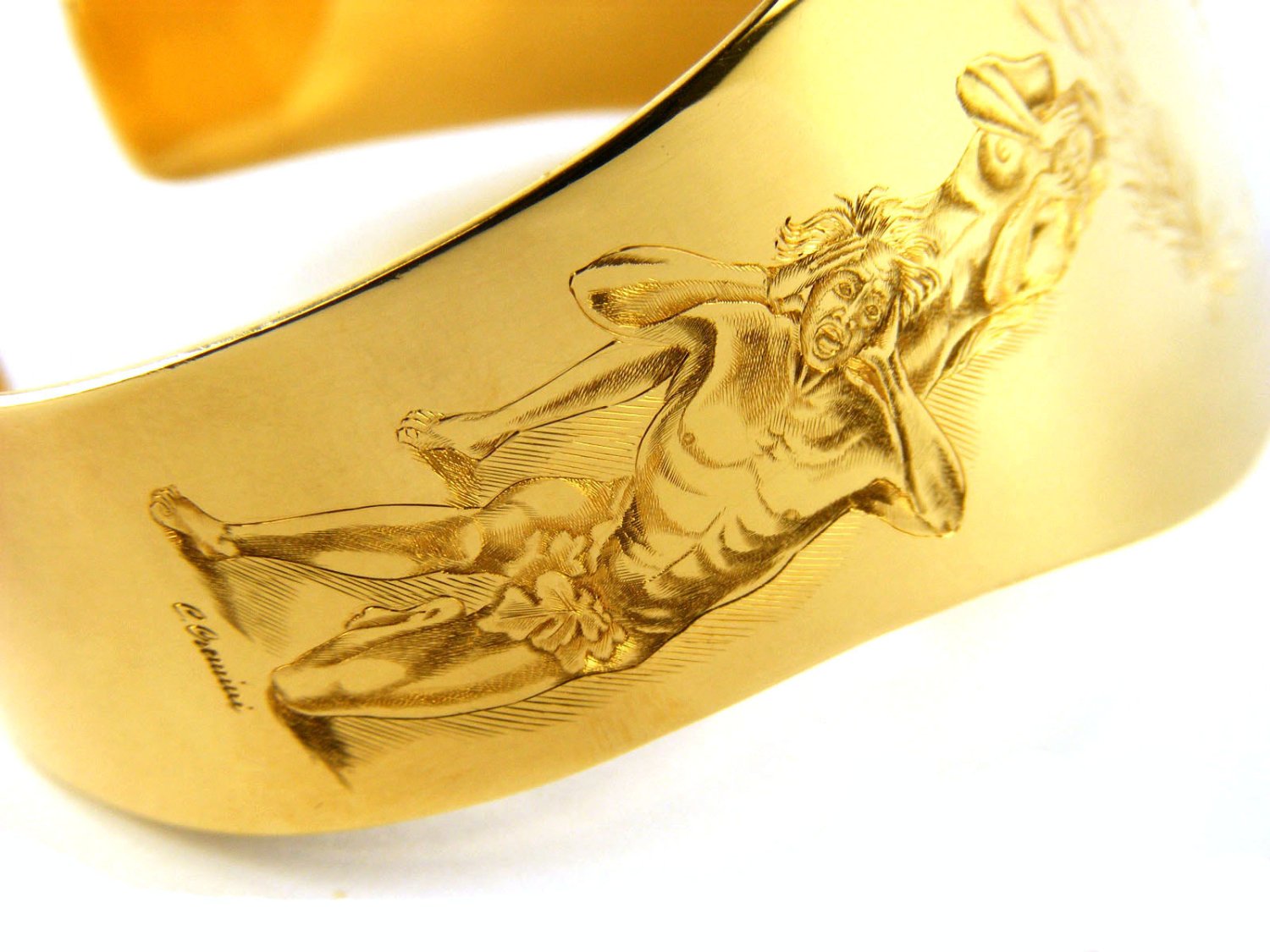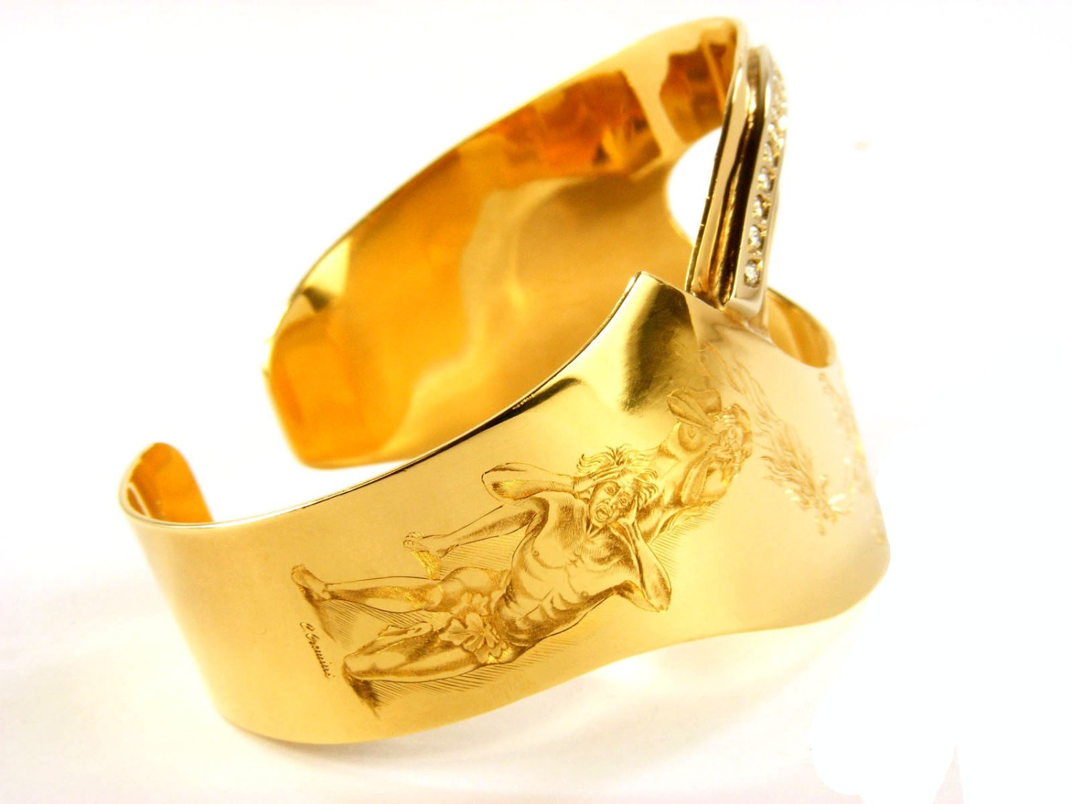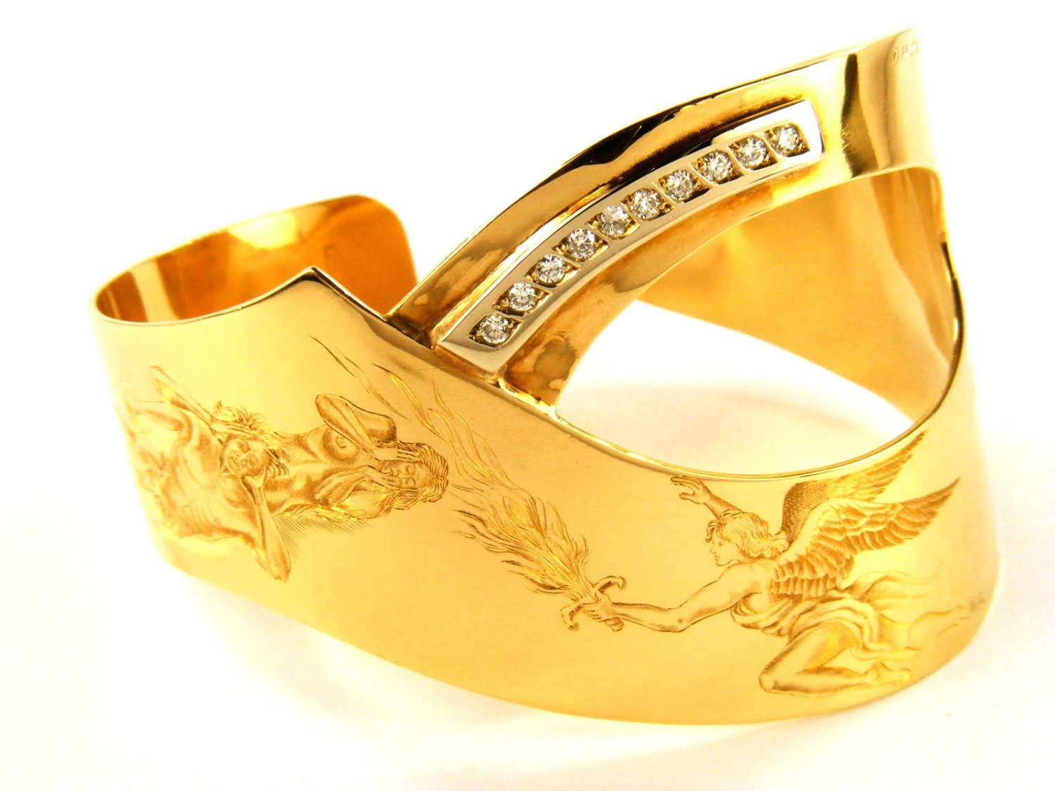 Armband aus 18 Karat Gelb- und Weißgold mit Diamanten 0,40 G VVS2 und Inzision Adamo und Eva mit Mosè. NEU!