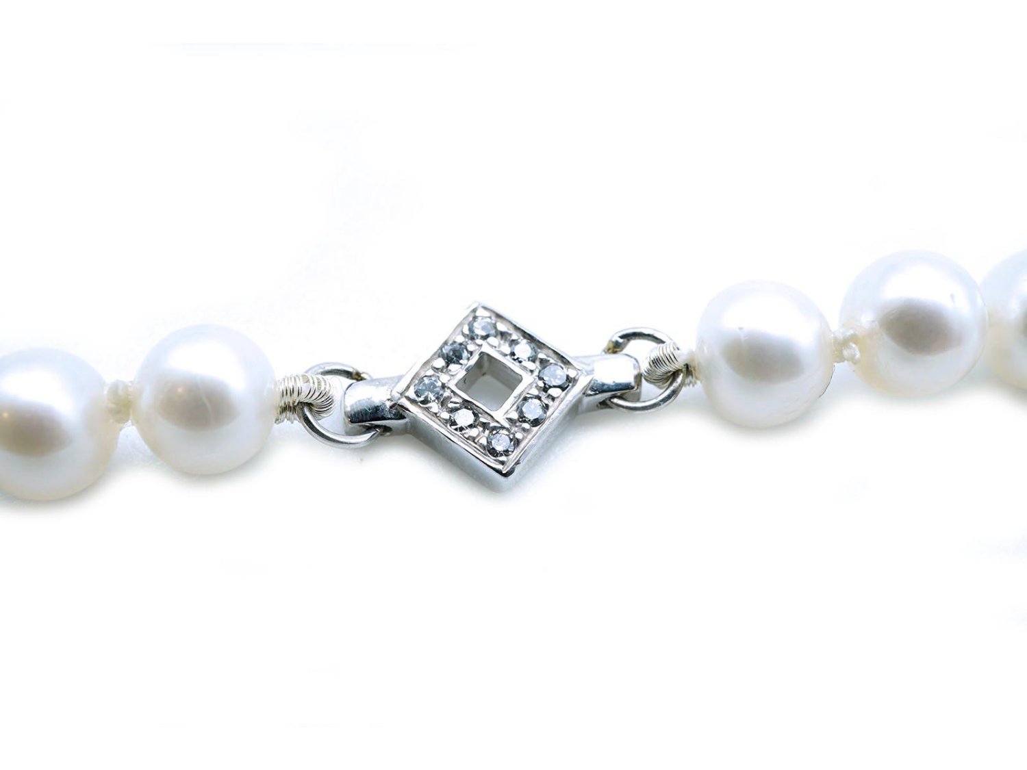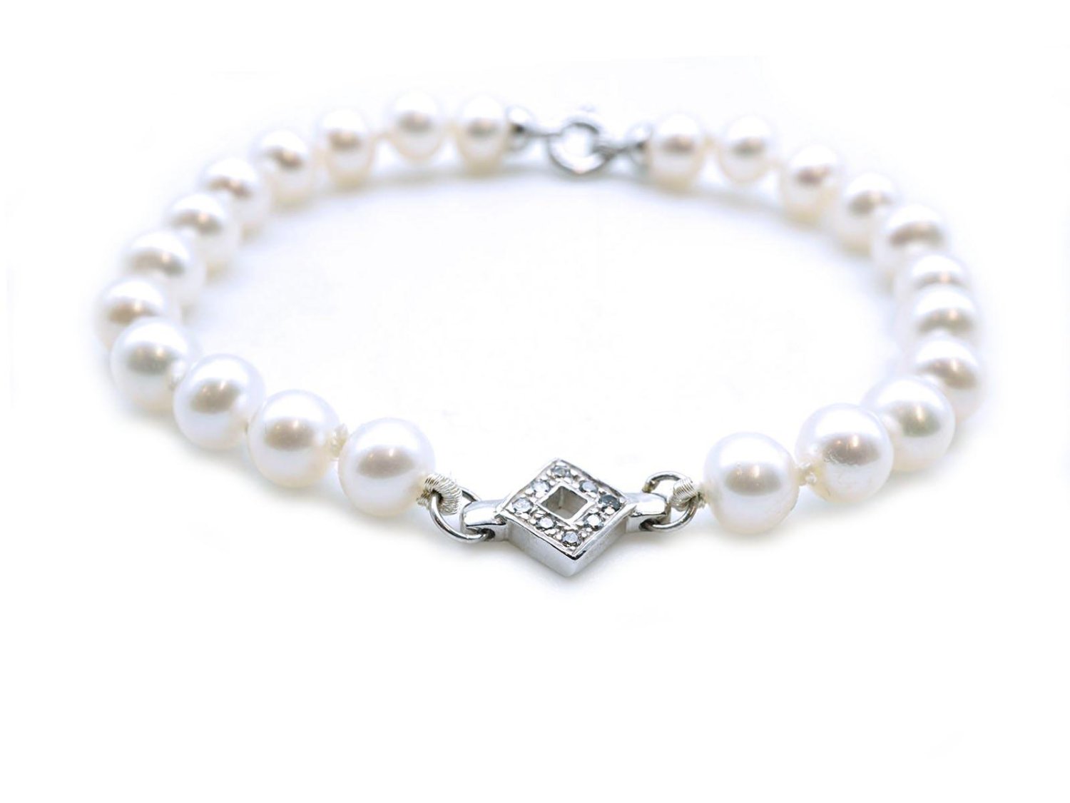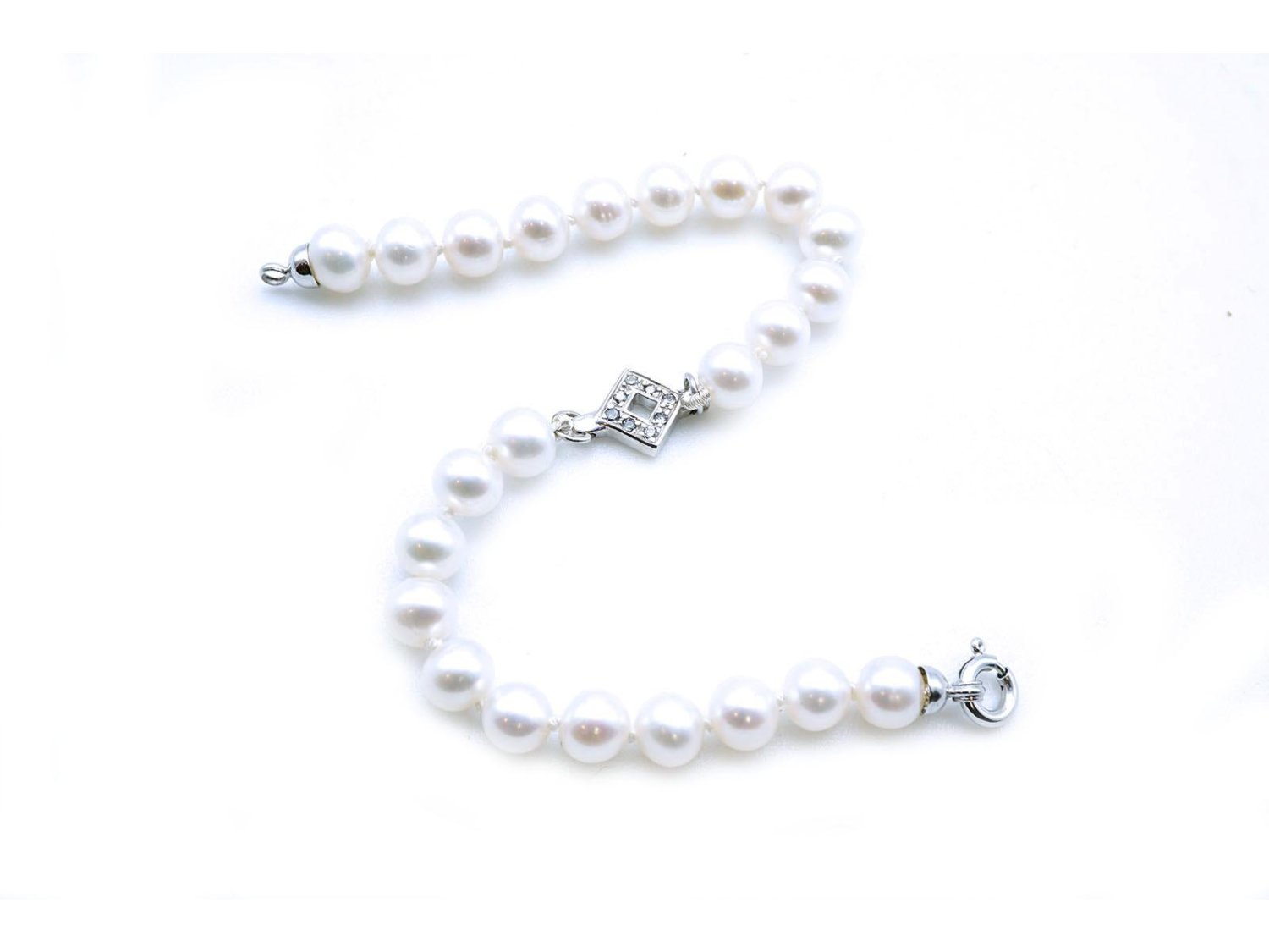 BRACCIALE in oro bianco 18Kt con Swarovsky e perle naturali Fresh water MM 5.00. NUOVO!