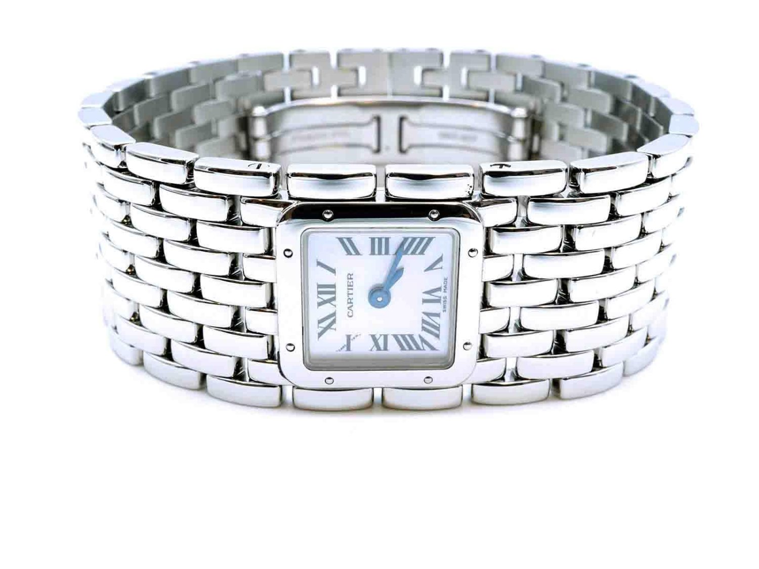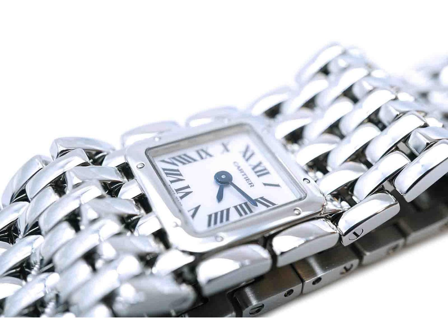 CARTIER Panthère Ruban Quarz aus Stahl Weiss-Perlmutt Ref. 2420. NEU!