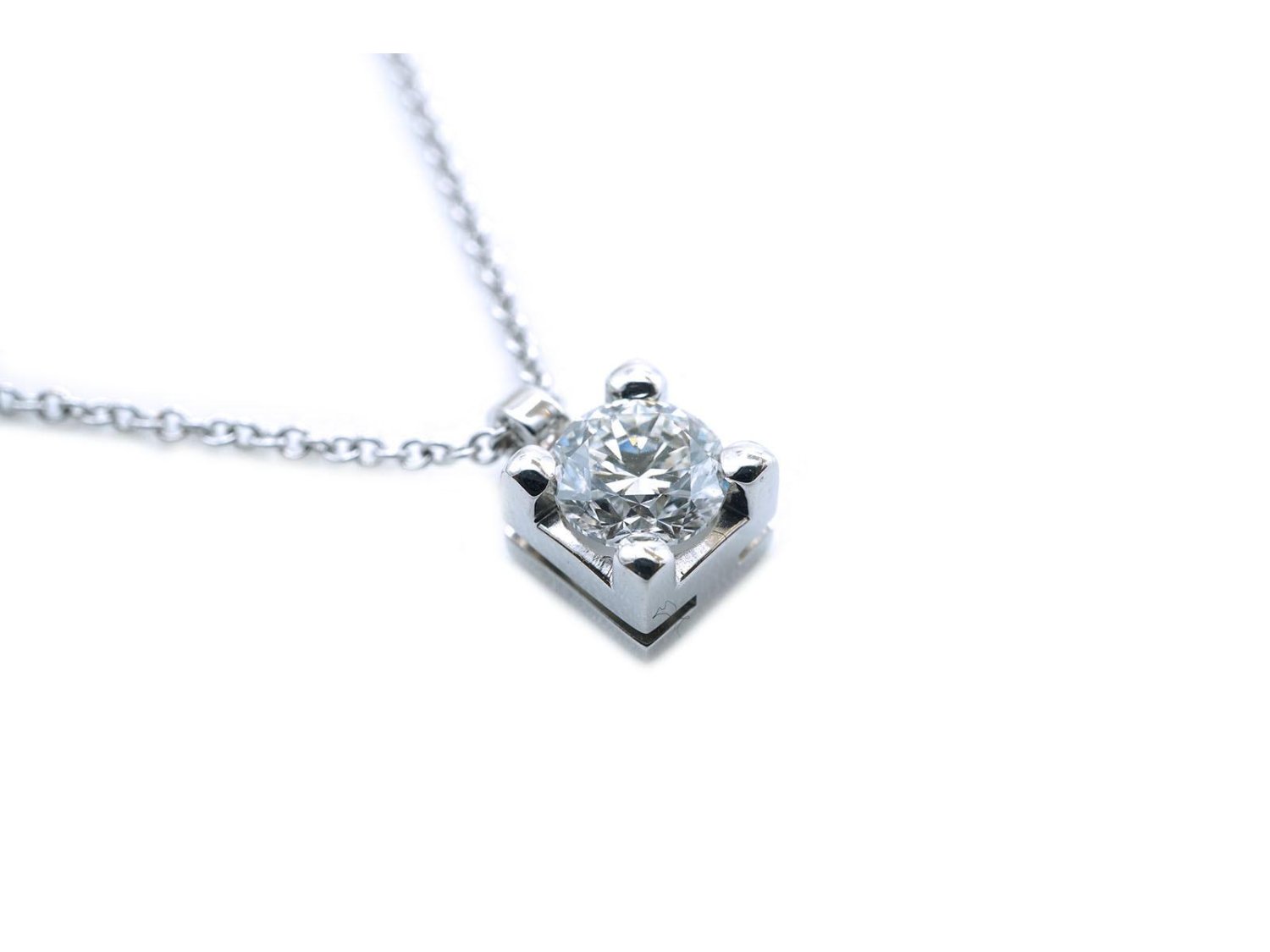 COLLANA con Solitario in oro bianco 18Kt con diamante ct 0.70 E Vs1. NUOVA!