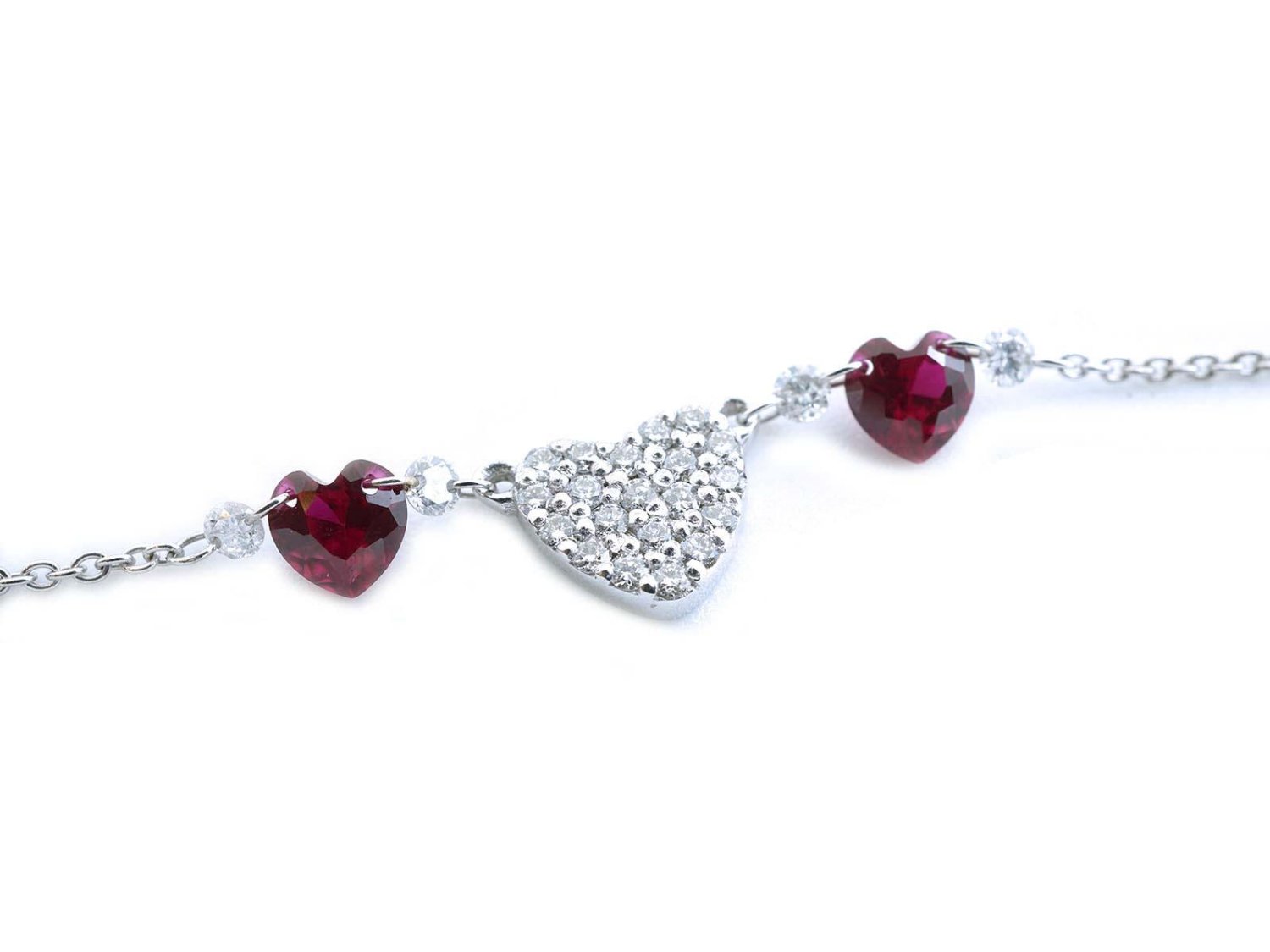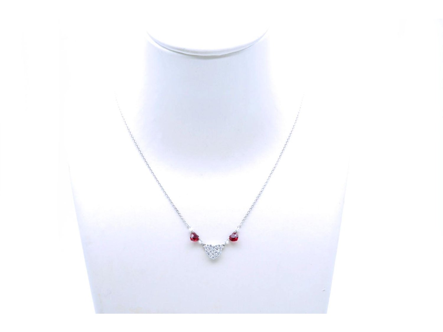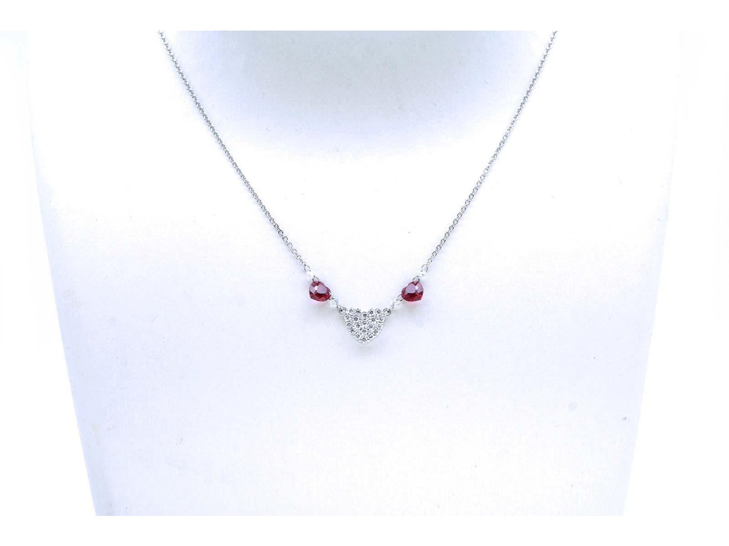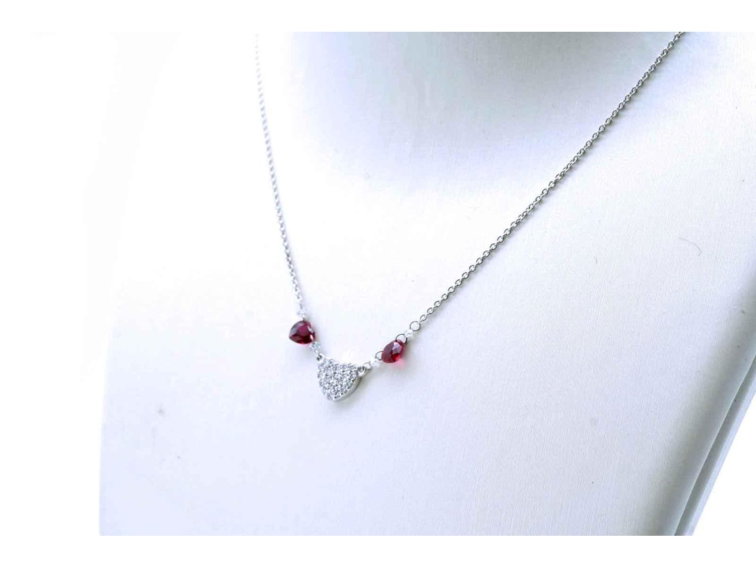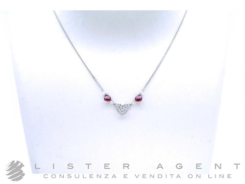 COLLANA Cuori in oro bianco 18Kt con diamanti ct 0.26 e rubini ct 0.74 Ref. C086/1-SO. NUOVO!