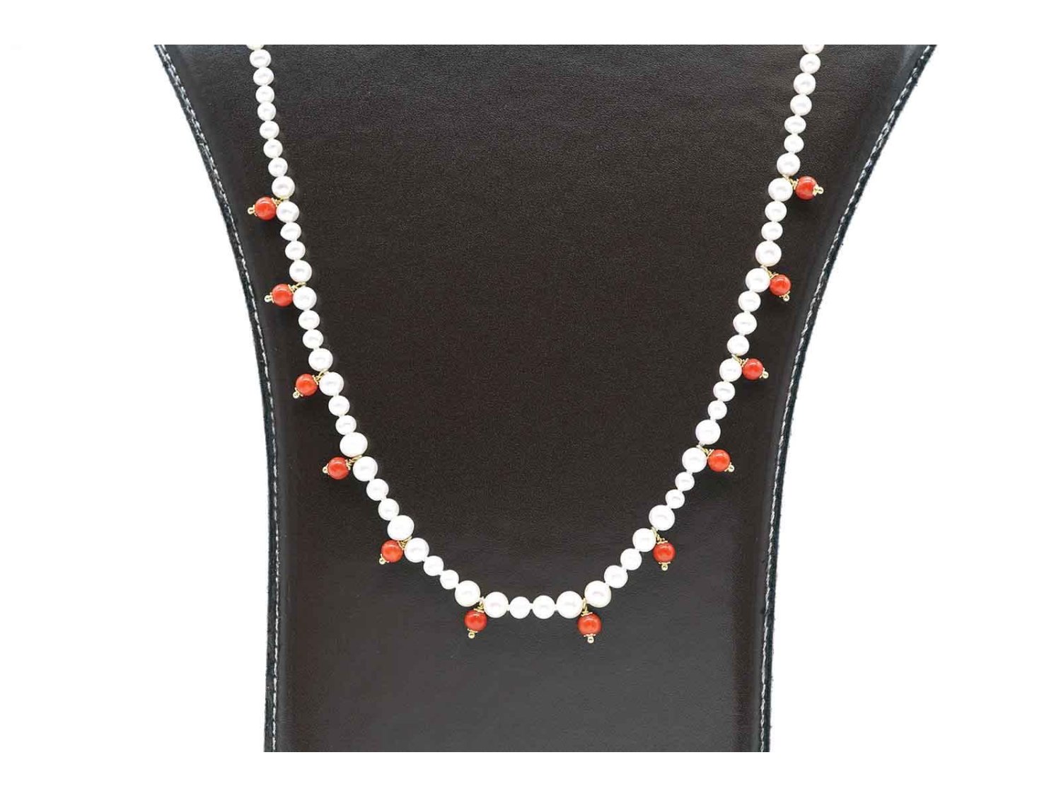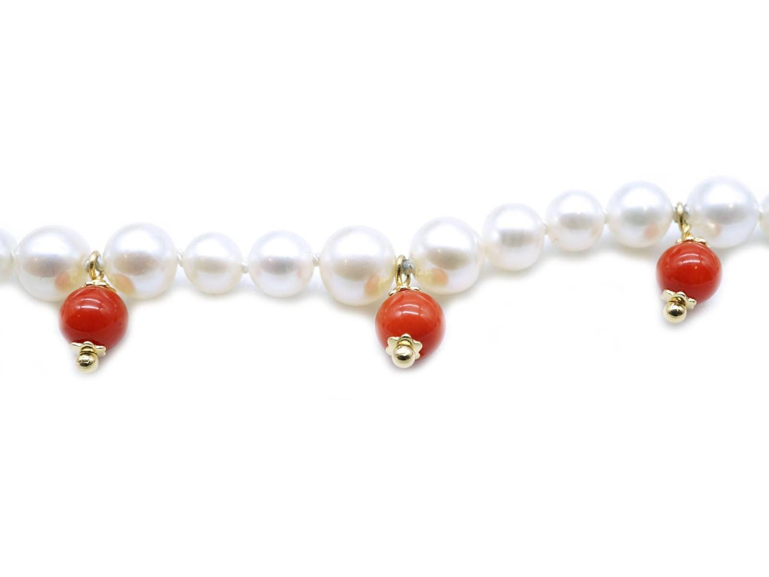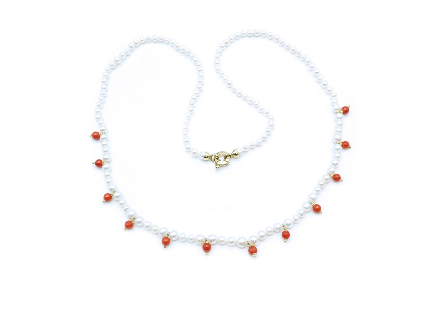 COLLANA perle bianche di acqua dolce con corallo naturale e chiusura in oro giallo 18Kt. NUOVA!