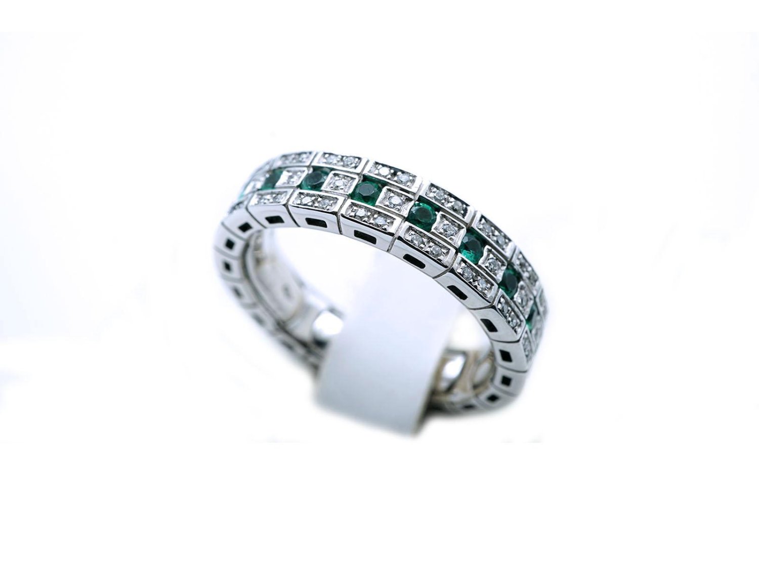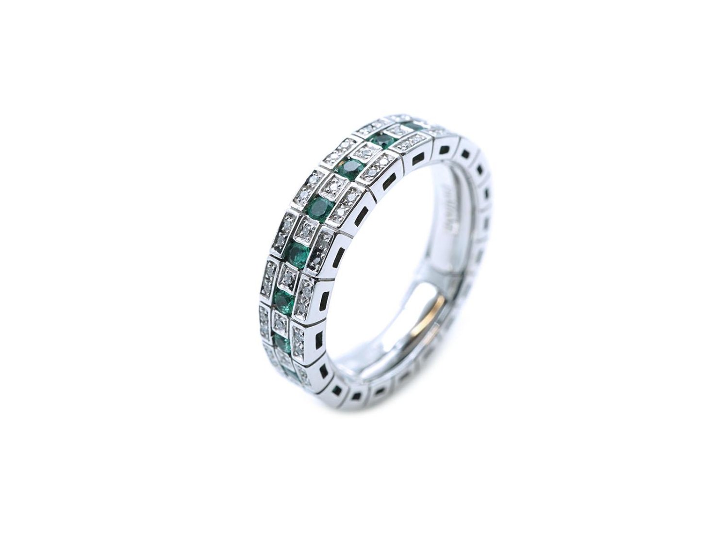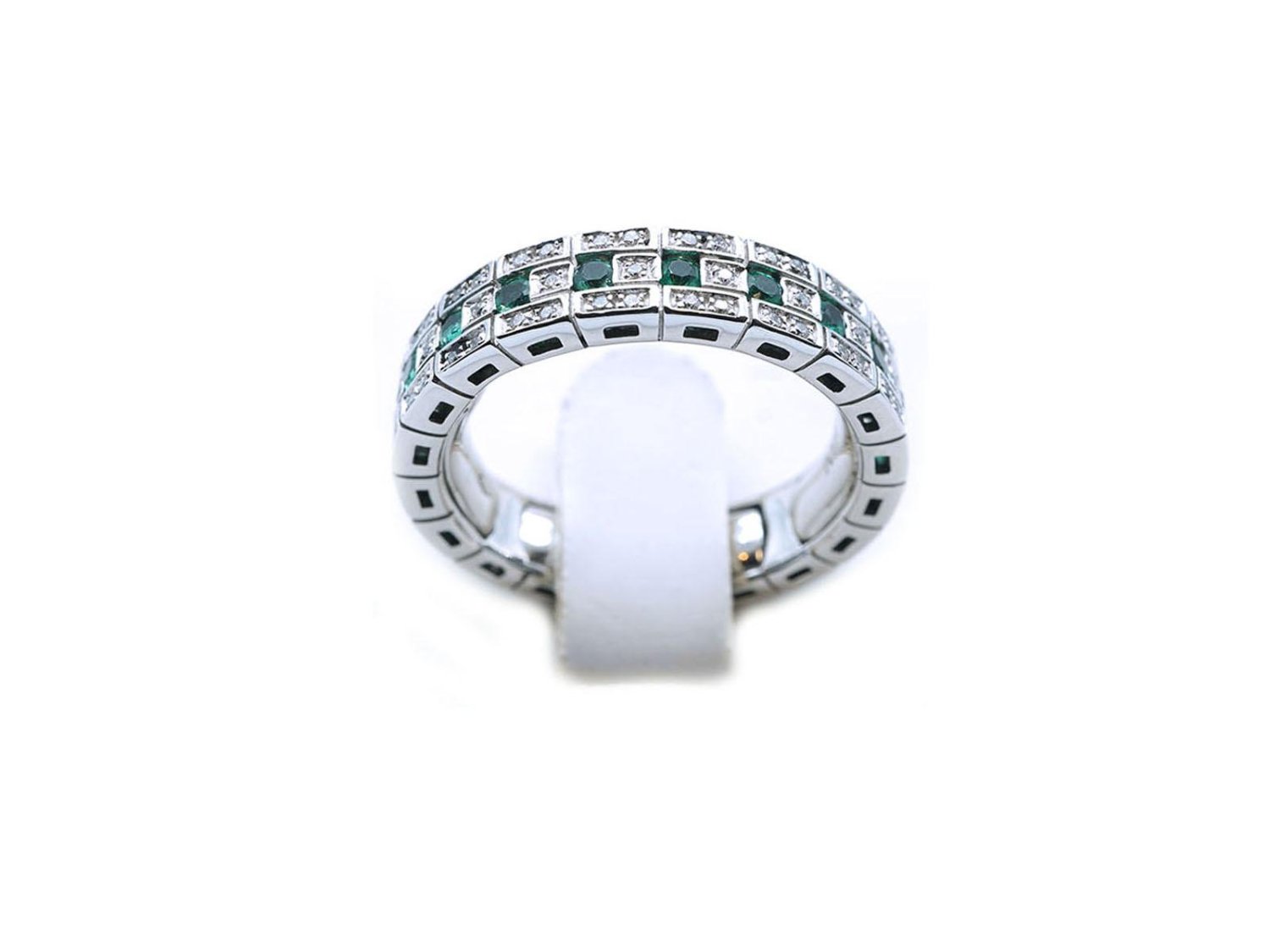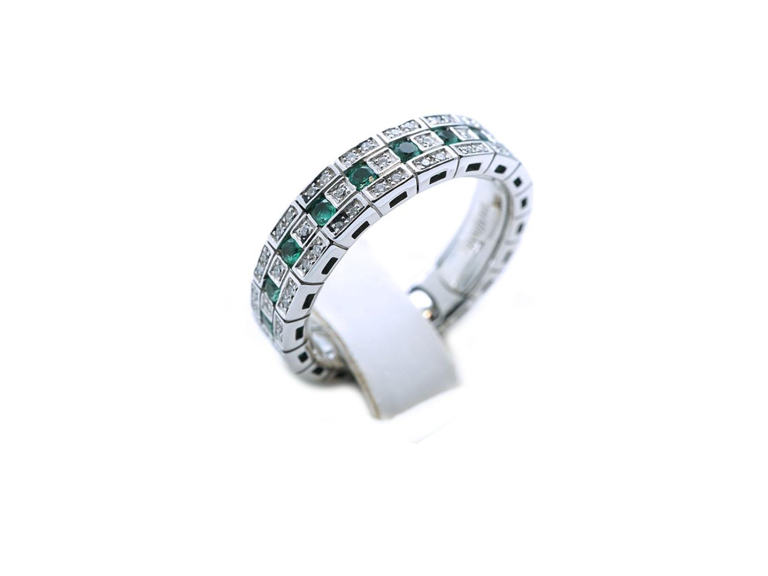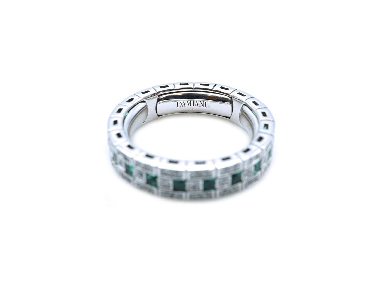 DAMIANI anello Eternal Confort Belle Epoque in oro bianco 18Kt con diamanti ct 0.30 e smeraldi ct 0.40 Misura 14 Ref. 2006805. NUOVO!
