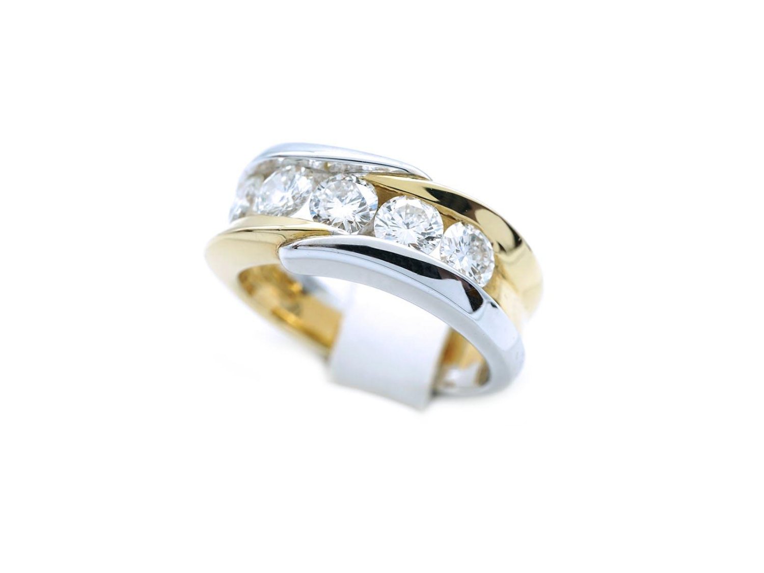 DAMIANI anello Veretta a 5 in oro giallo e bianco 18Kt con diamanti ct 1.16 Misura 16. NUOVO!