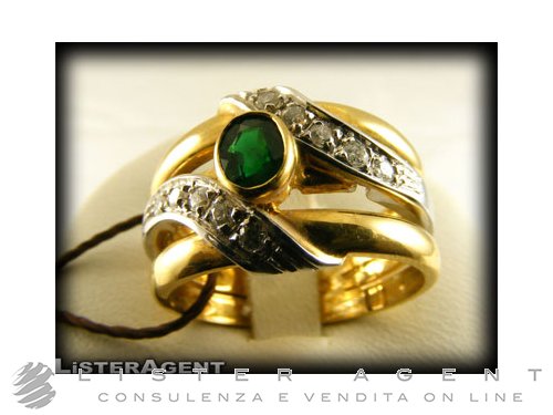 DAMIANI Ring aus 18 Karat Weiß- und Gelbgold Smaragd ct 0,32 und Diamanten ct 0,20 H Größe 16 Ref. DMN15642. NEU!