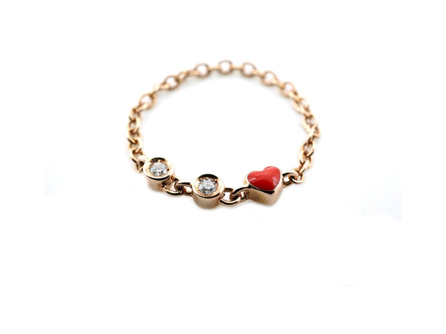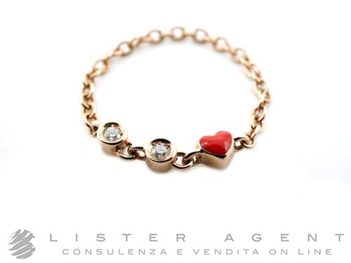 DODO by Pomellato anello Messaggio in oro rosa 9Kt con diamanti e smalto rosso Ref. DAC0005. NUOVO!