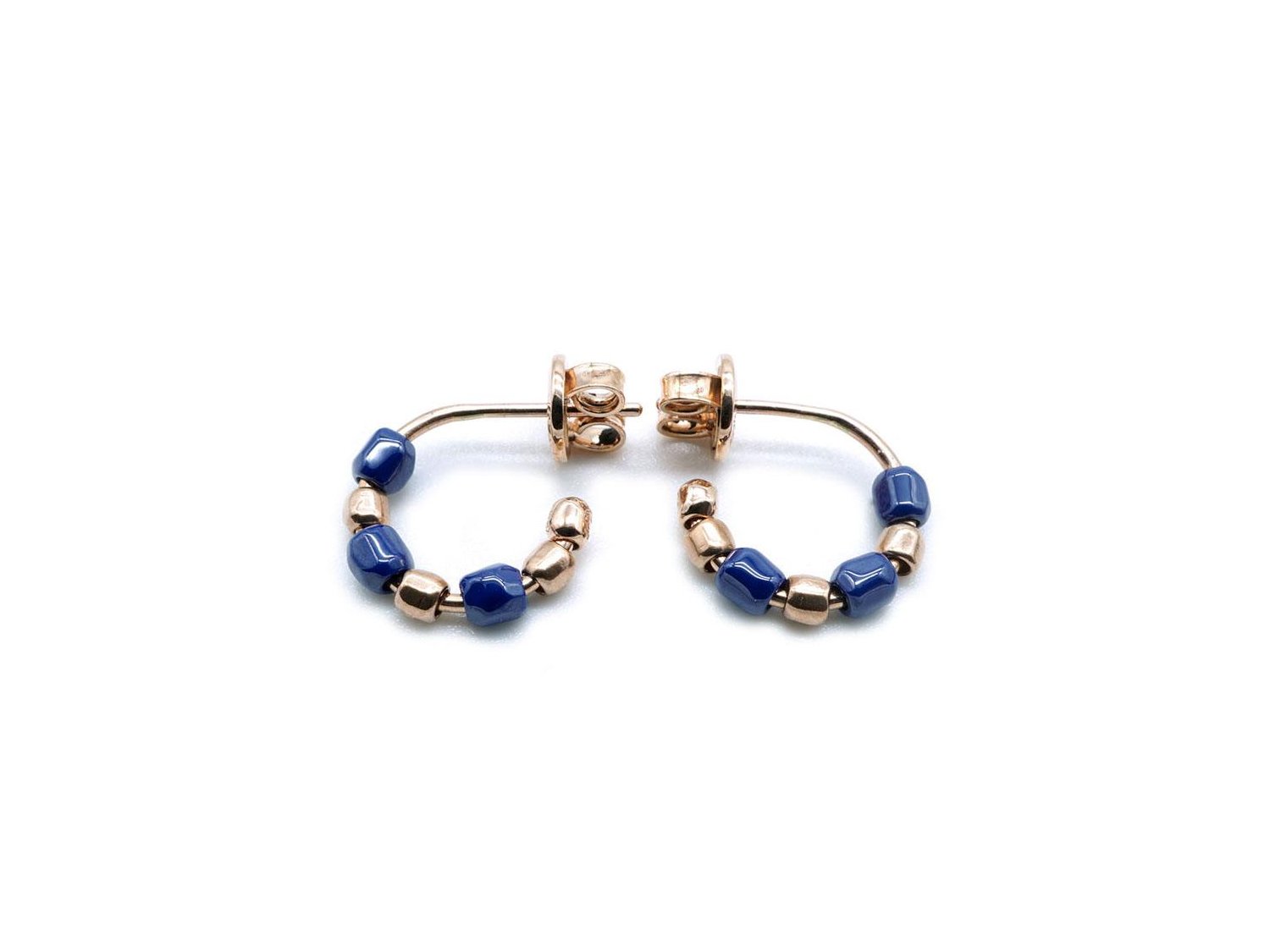 DODO by Pomellato orecchini cerchio Mini Granelli in oro rosa 9Kt e ceramica Ref. DOC1002_GRANX_CBL9R. NUOVI!