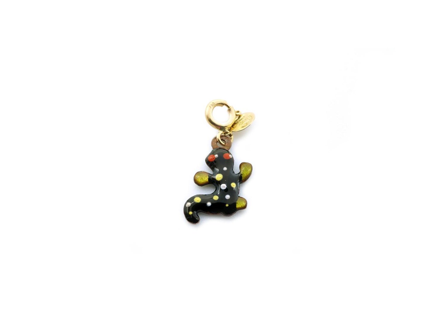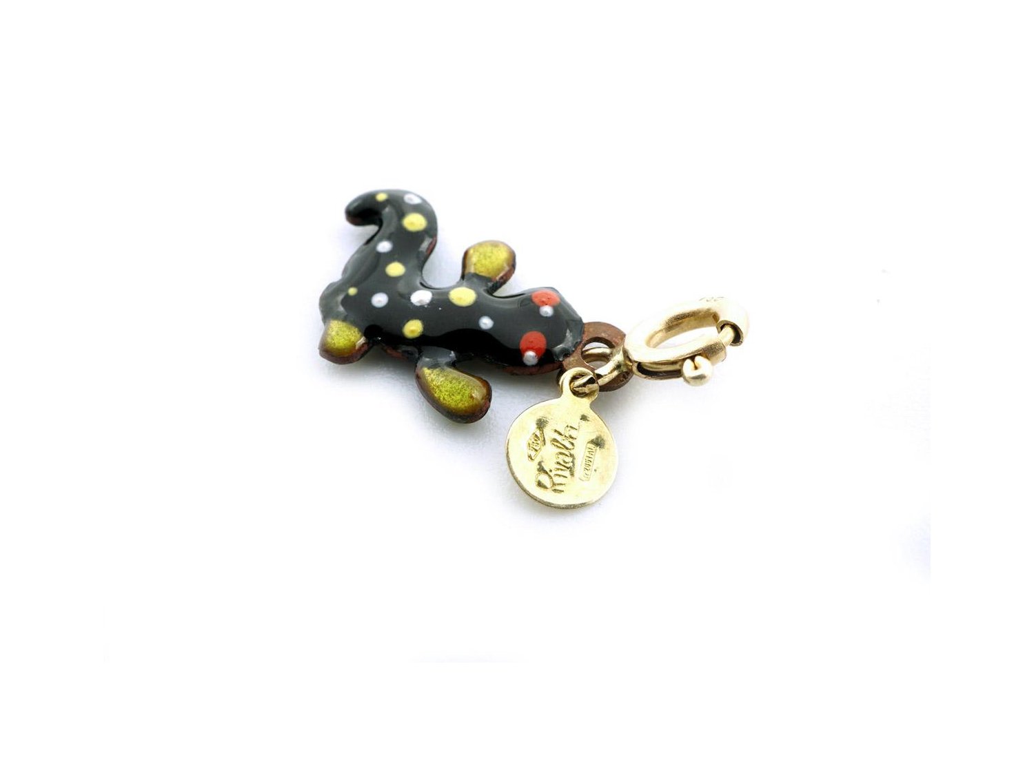 GABRIELLA RIVALTA collezione Amorini ciondolo Salamandra nera in oro giallo 18Kt e rame smaltato Ref. 14129860. NUOVO!