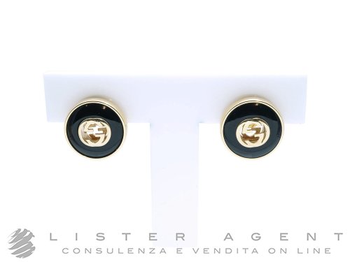 GUCCI orecchini Interlocking in oro rosa 18Kt con onice Ref. YBD78655400100U. NUOVI!