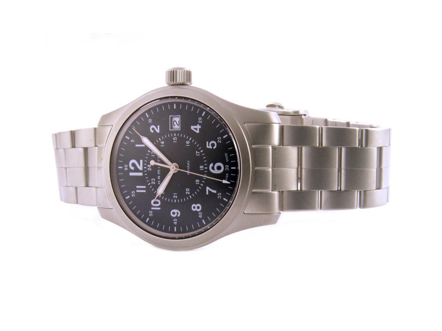 HAMILTON Khaki Date in gebürstetem Stahl Schwarz Ref. H68201143. NEU!