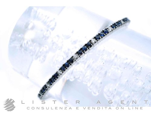 JARRETIERE bracciale elastico Tennis in oro bianco 18Kt con diamanti ct 0.50 e zaffiri blu ct 2.26 Ref. BRF-3ZF/W. NUOVO!