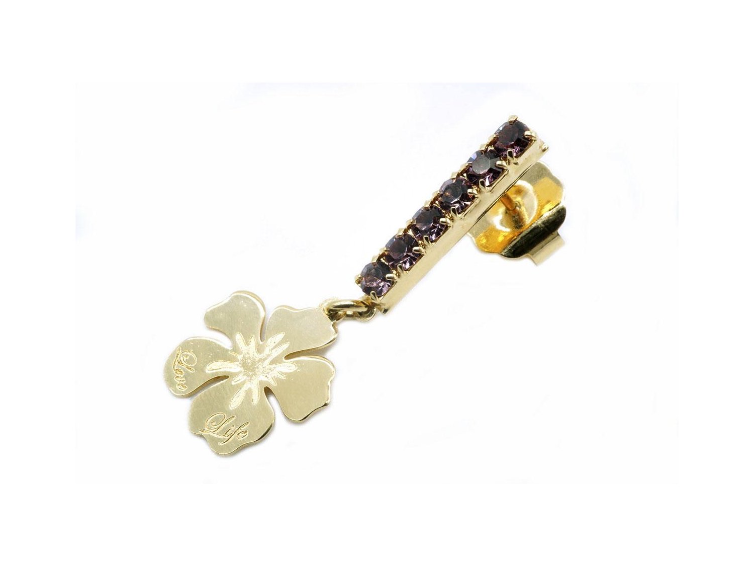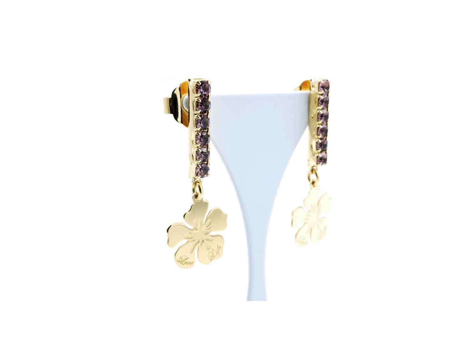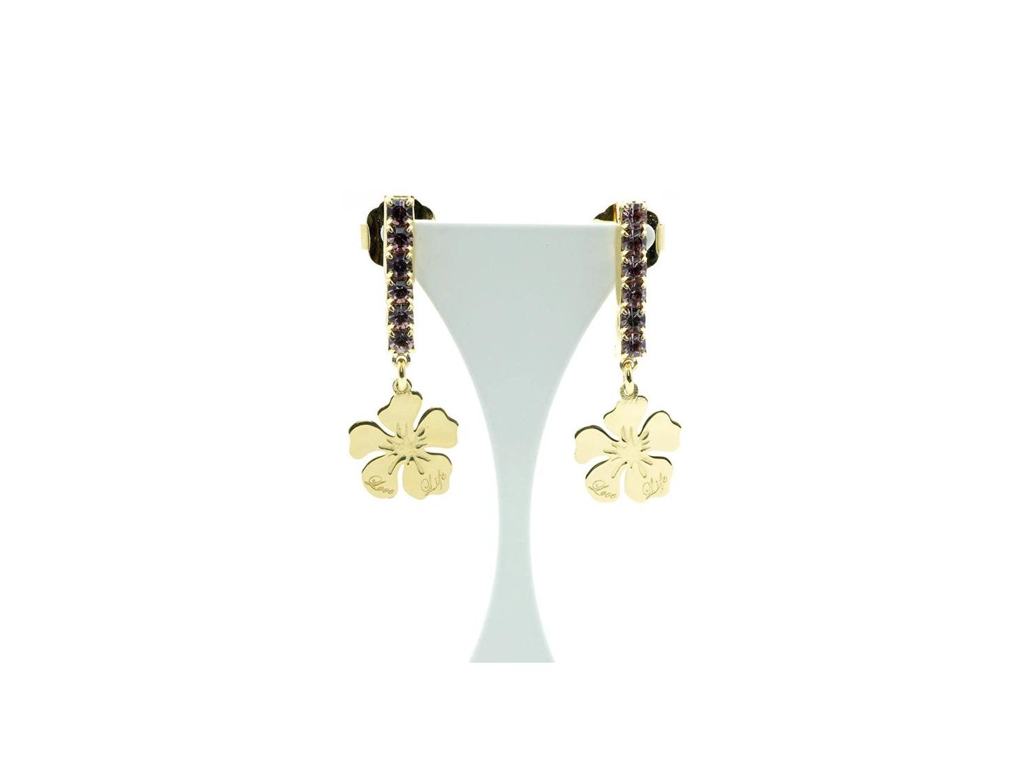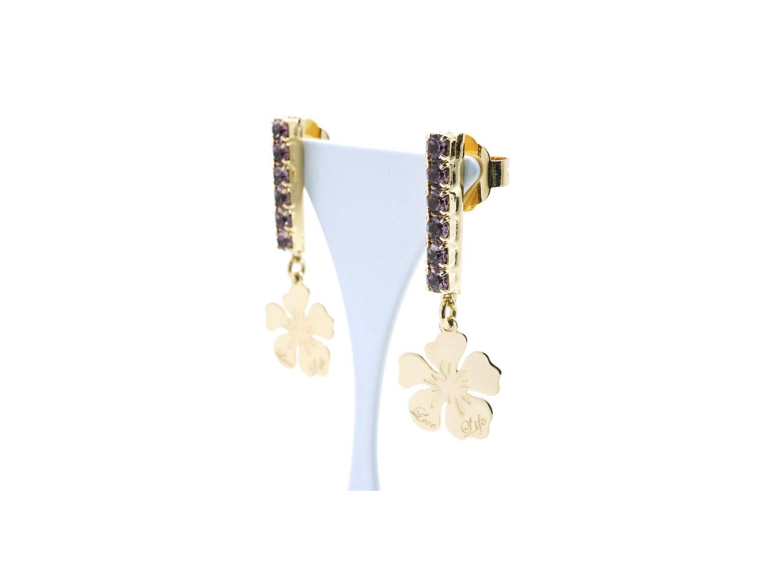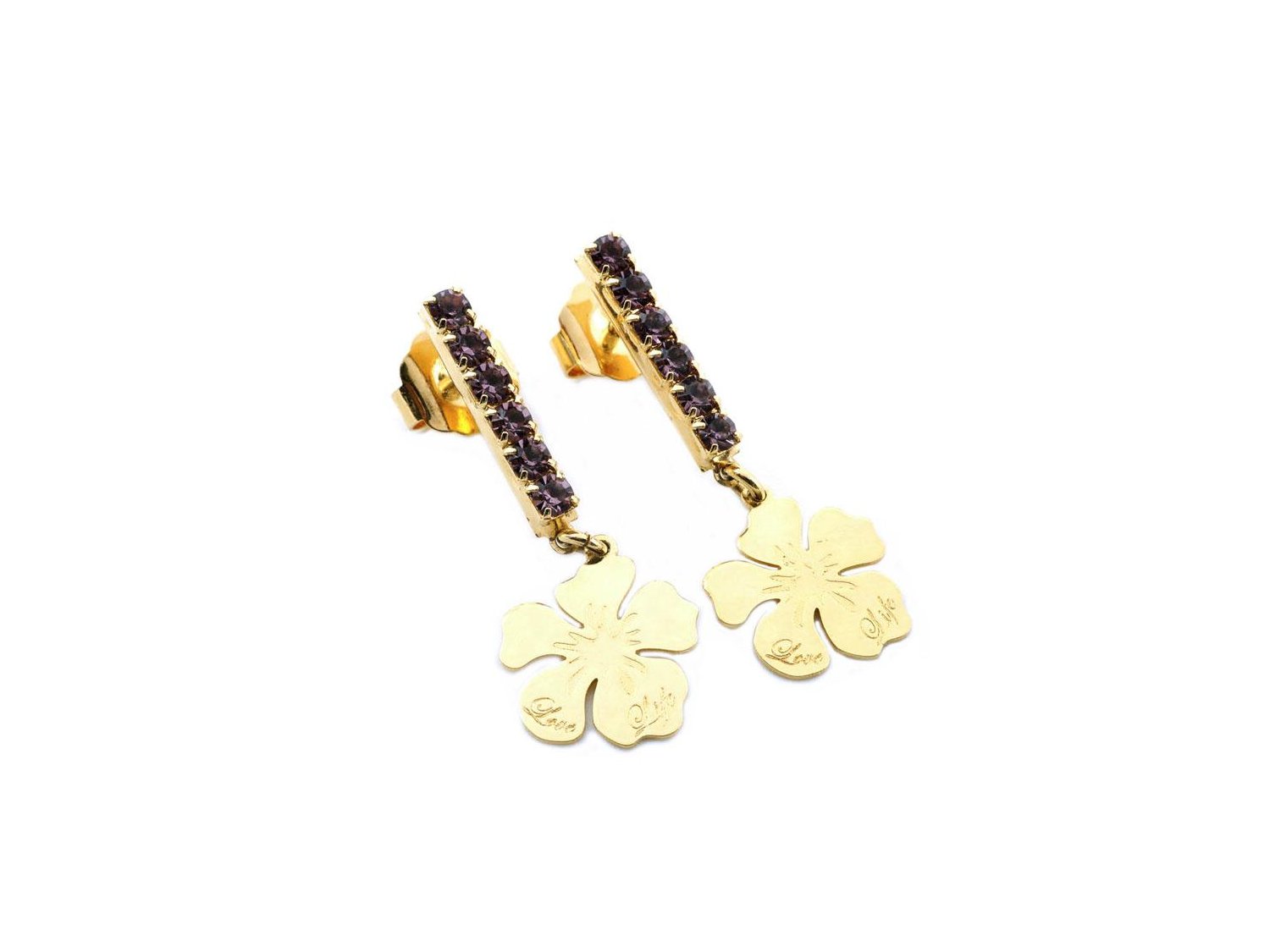 ORECCHINI Fiori in metallo placcato oro con pietre viola Ref. BOOR27. NUOVI!