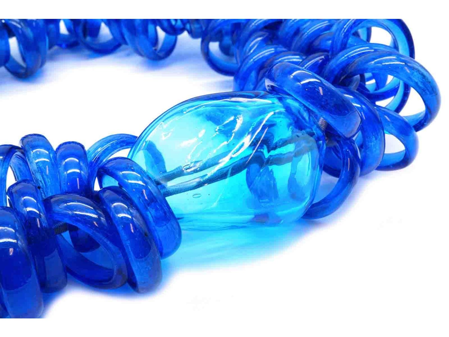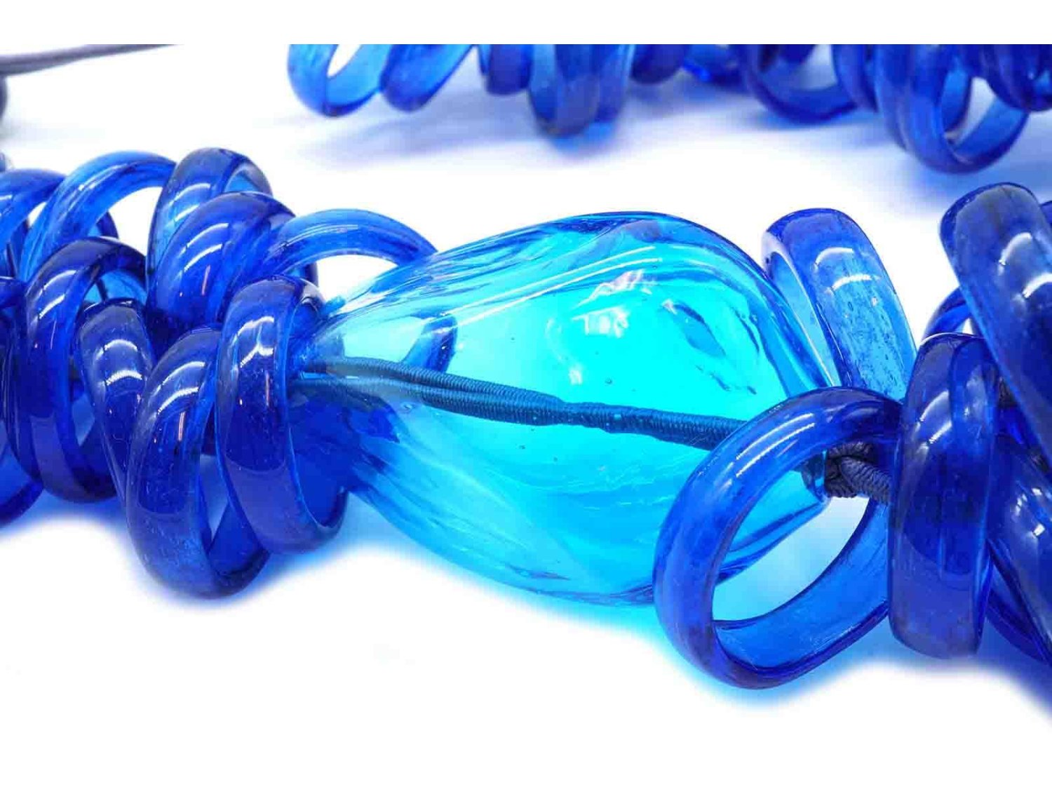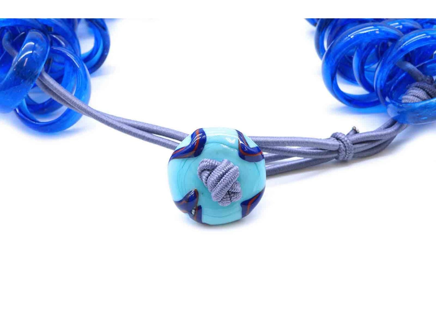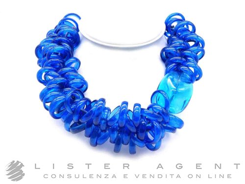 PAMURRINA collana elastica in vetro di Murano blu trasparente. NUOVA!