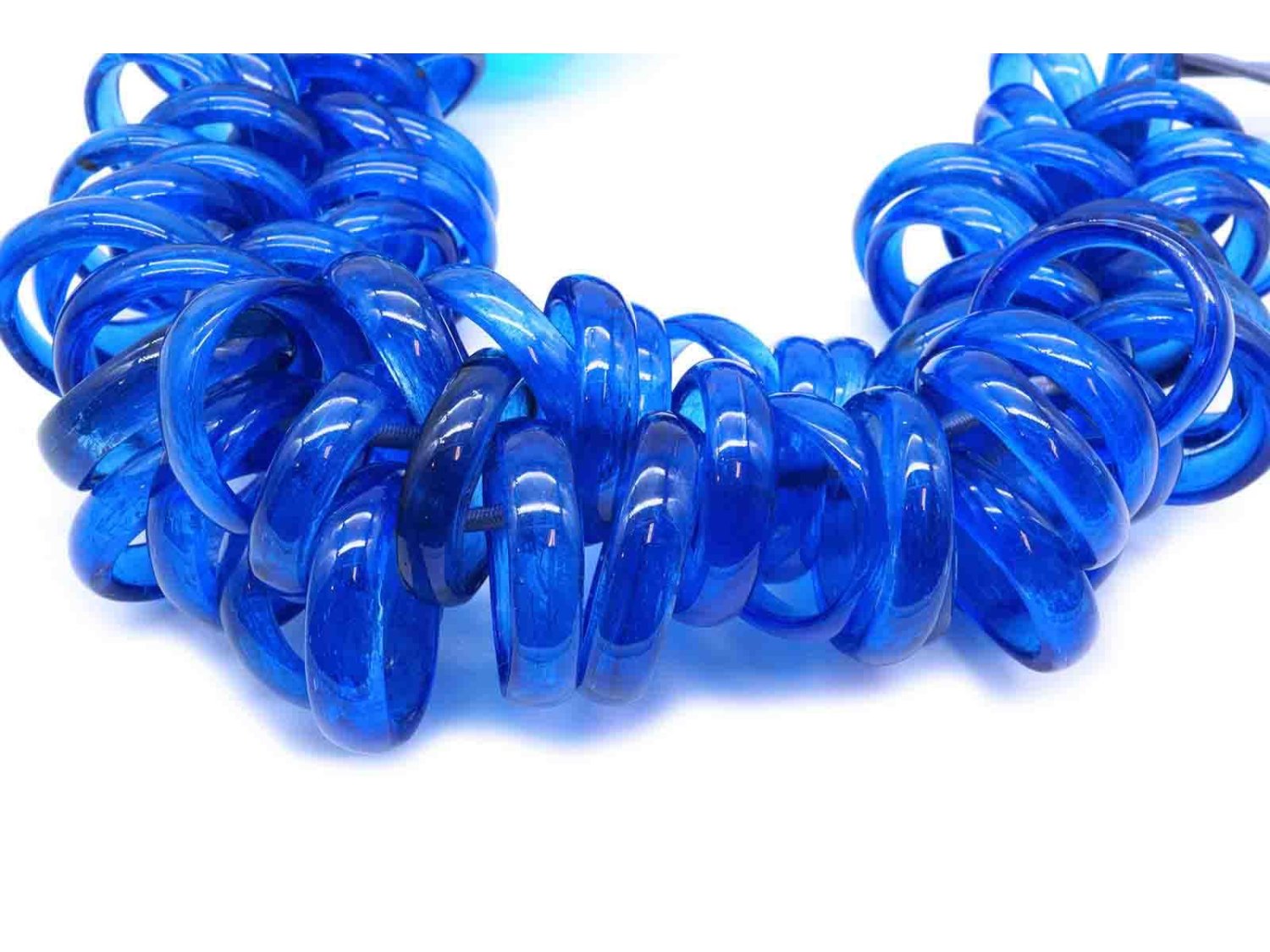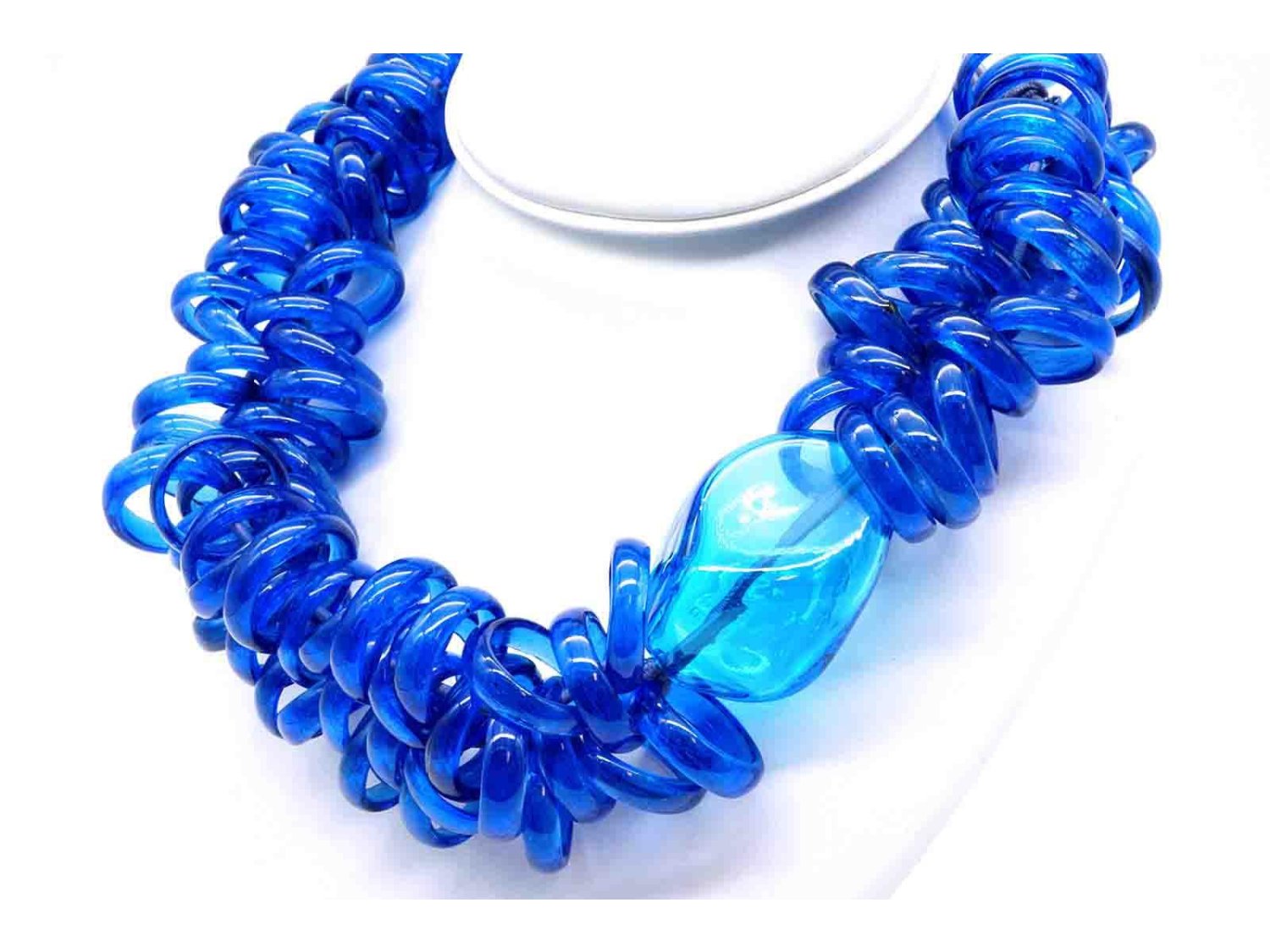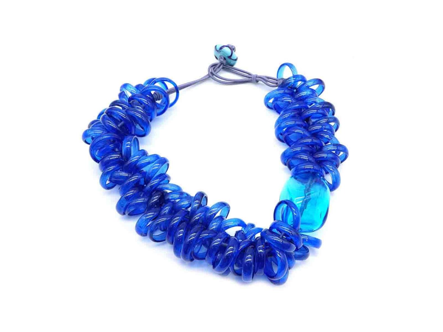PAMURRINA collana elastica in vetro di Murano blu trasparente. NUOVA!