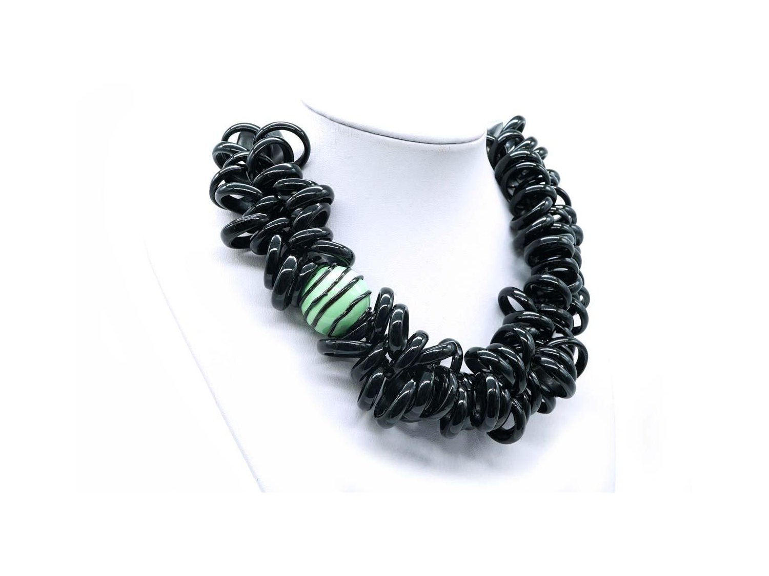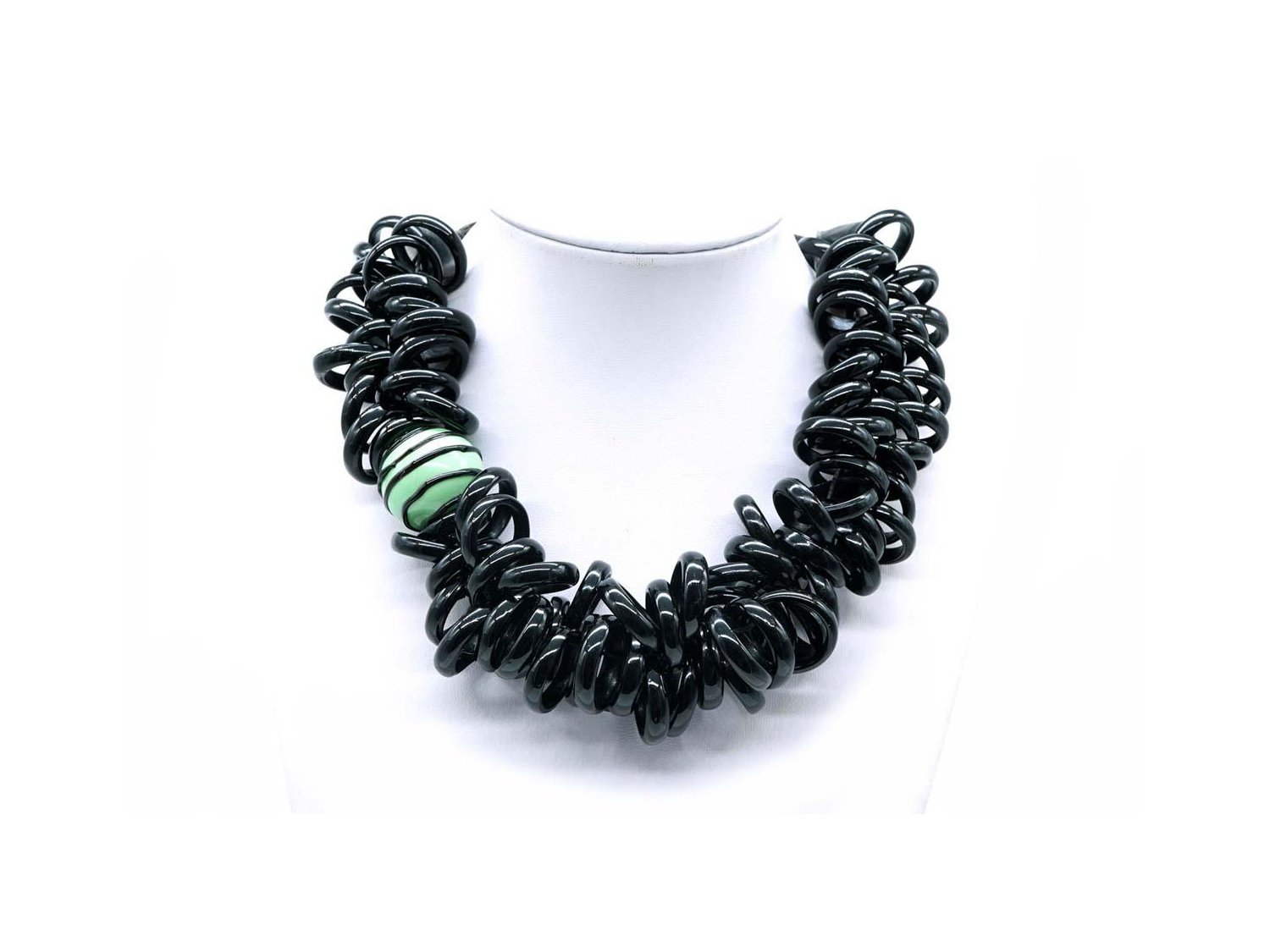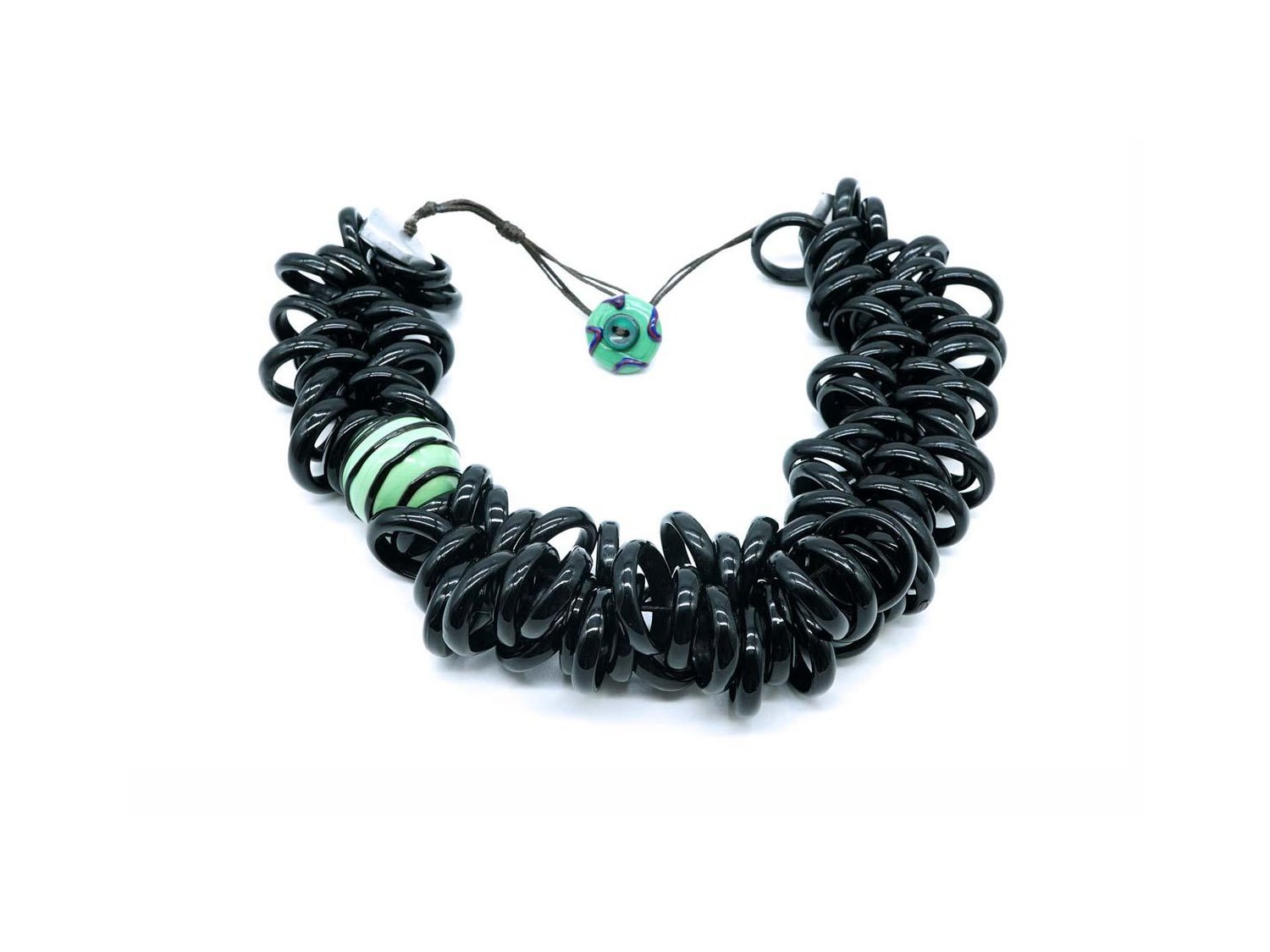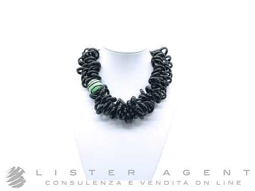 PAMURRINA collana in vetro di Murano Nera e Verde con tessuto. NUOVA!