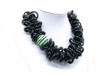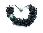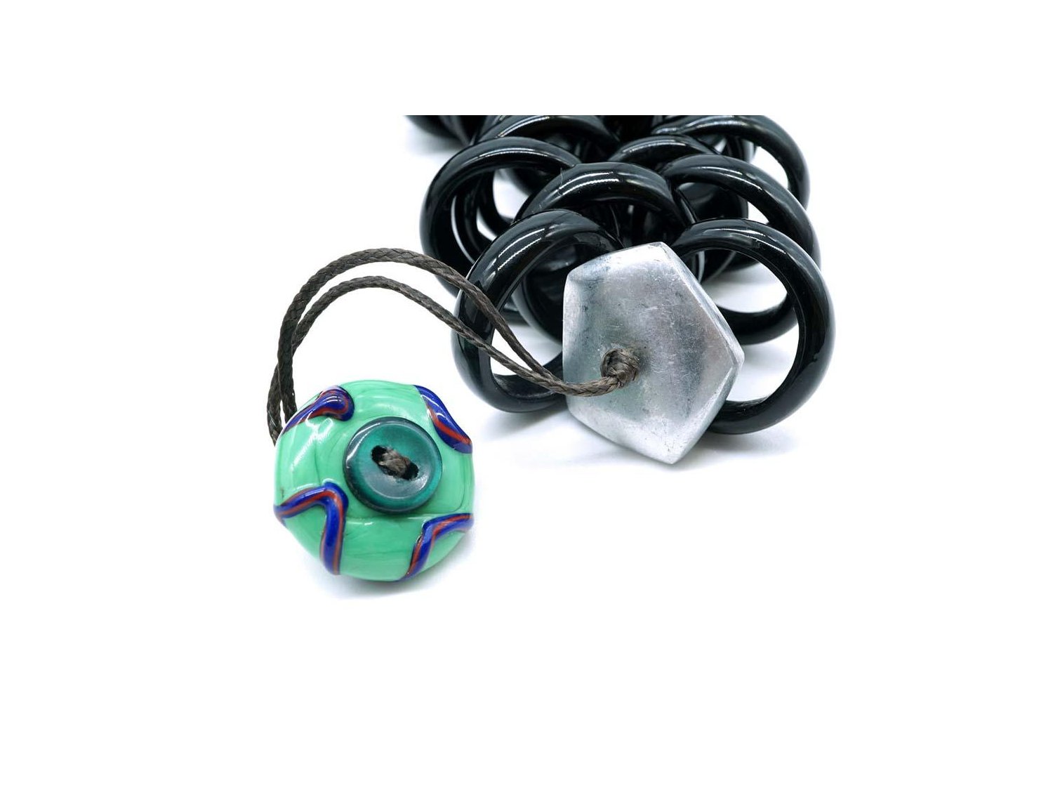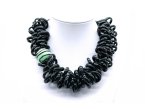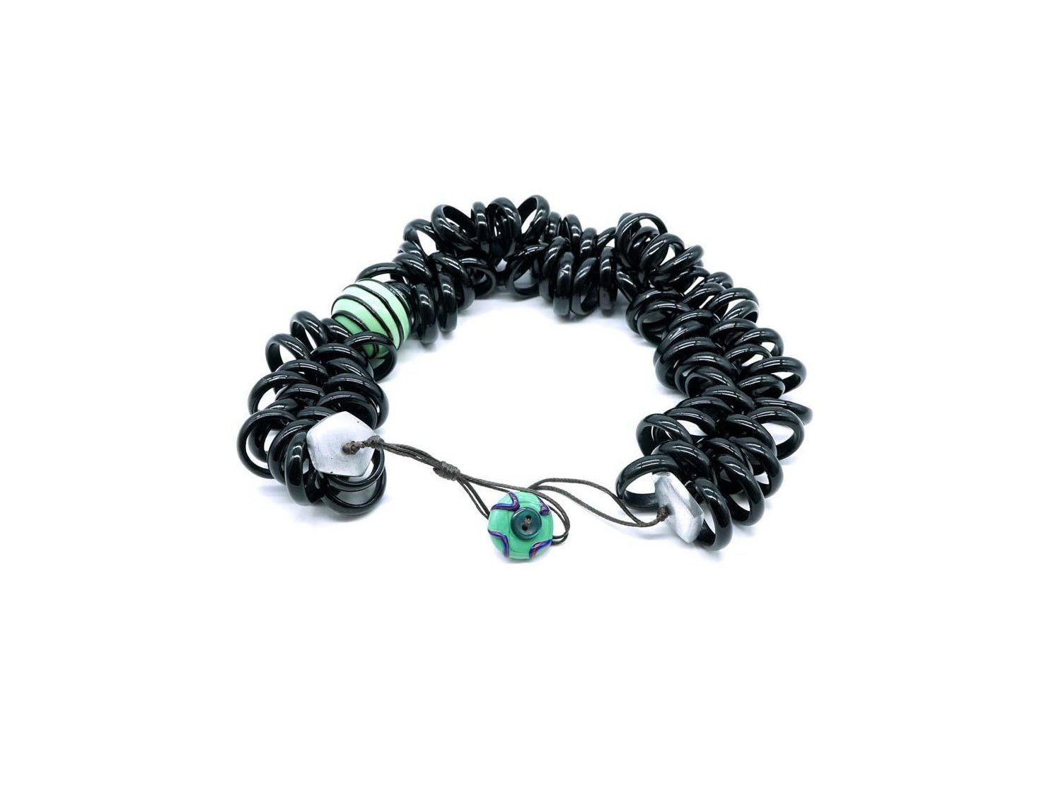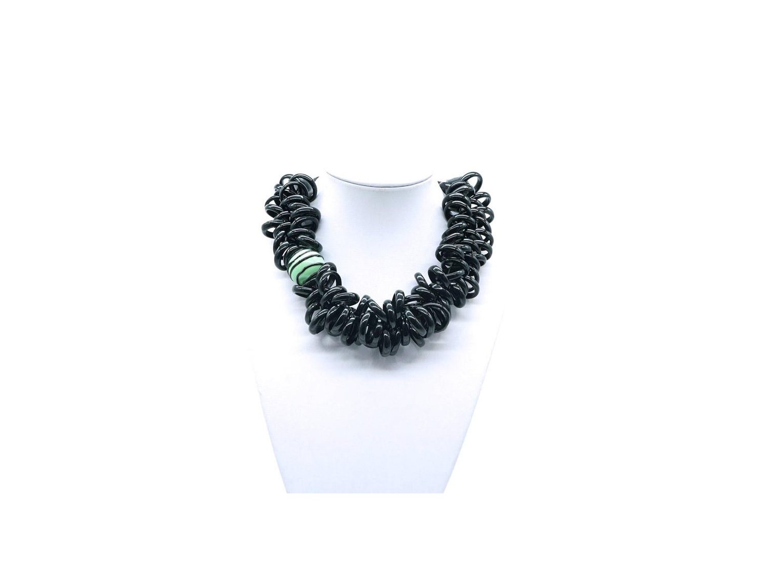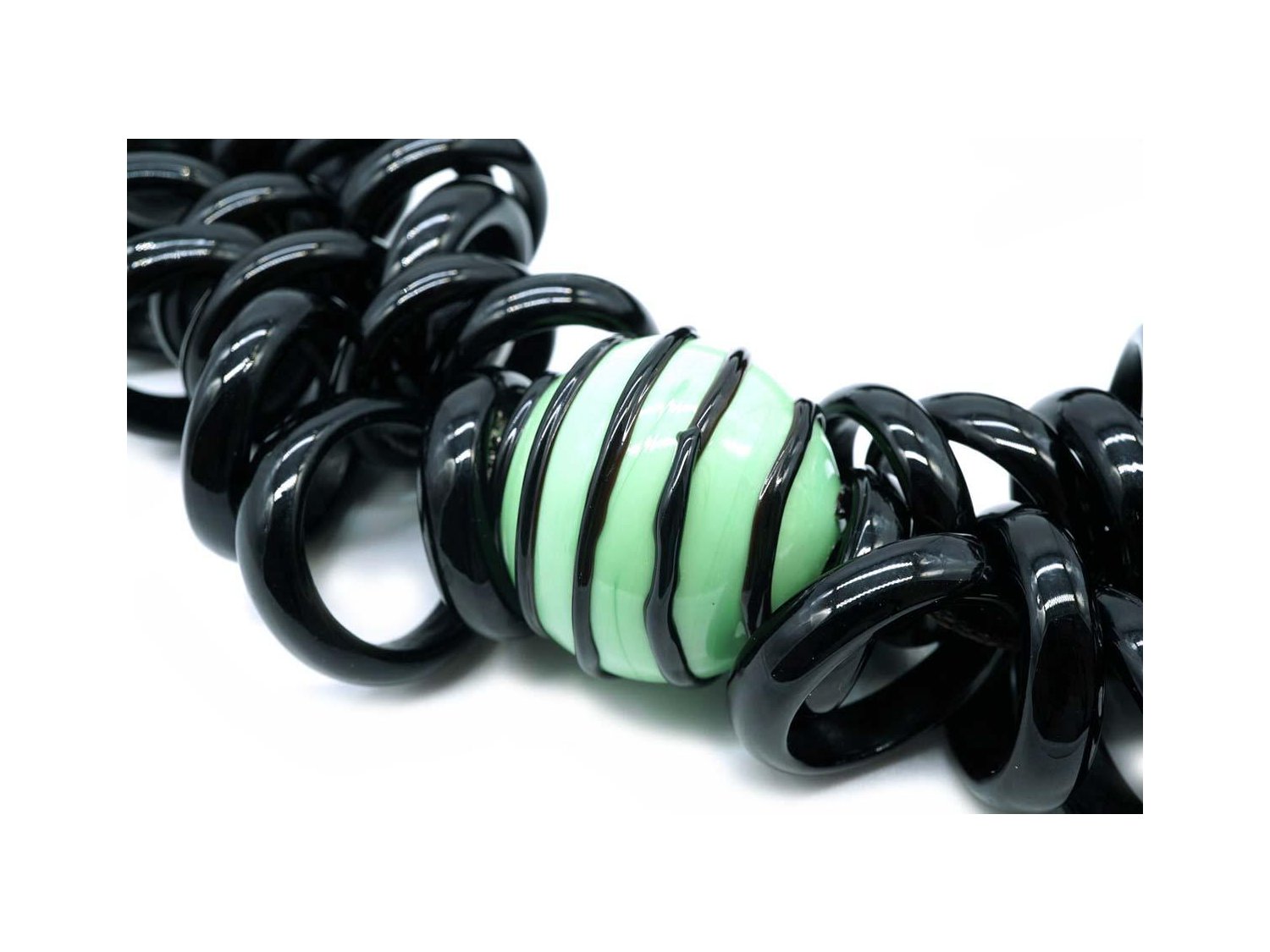 PAMURRINA collana in vetro di Murano Nera e Verde con tessuto. NUOVA!