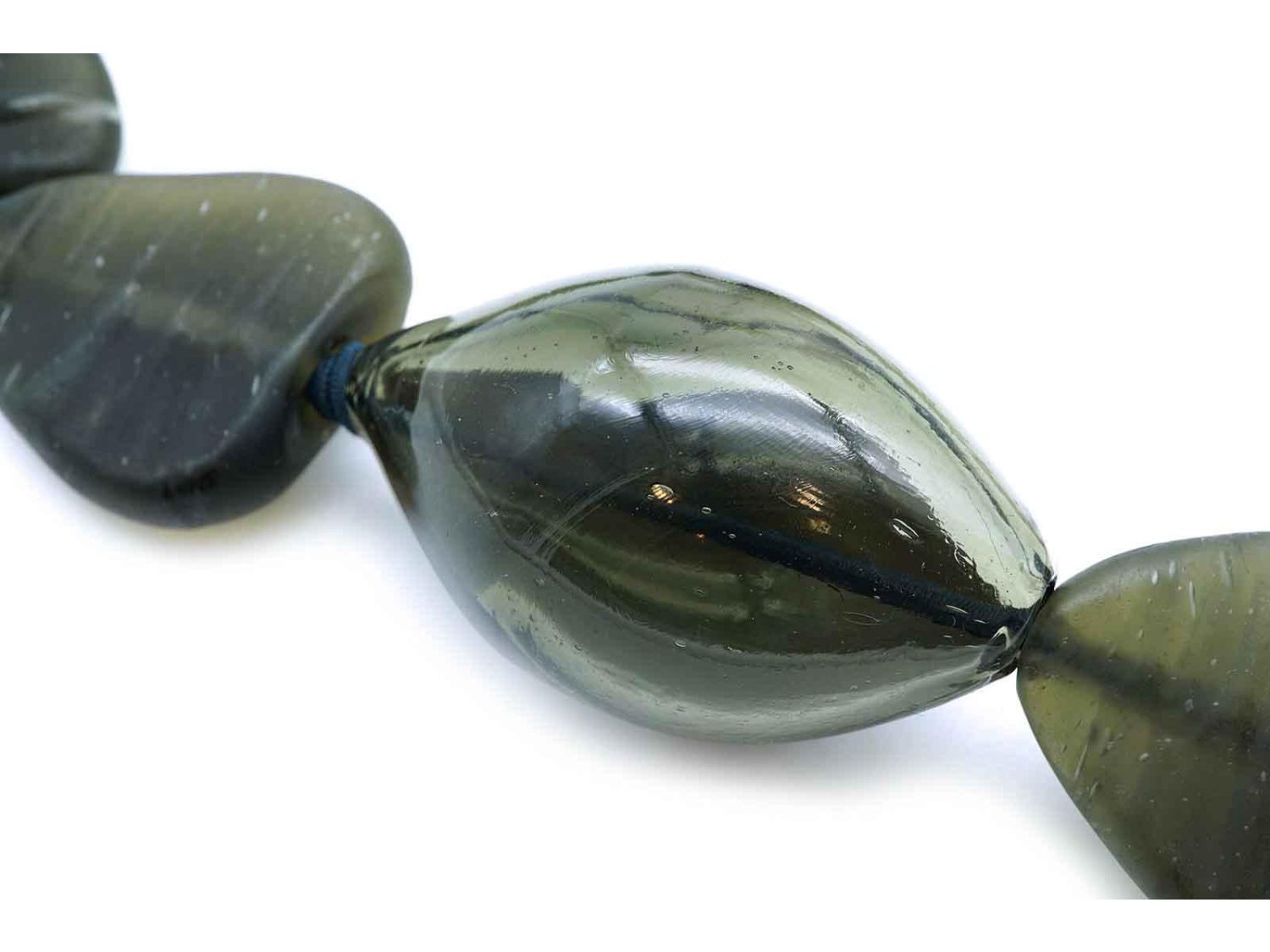 PAMURRINA collana in vetro di Murano verde satinato. NUOVA!