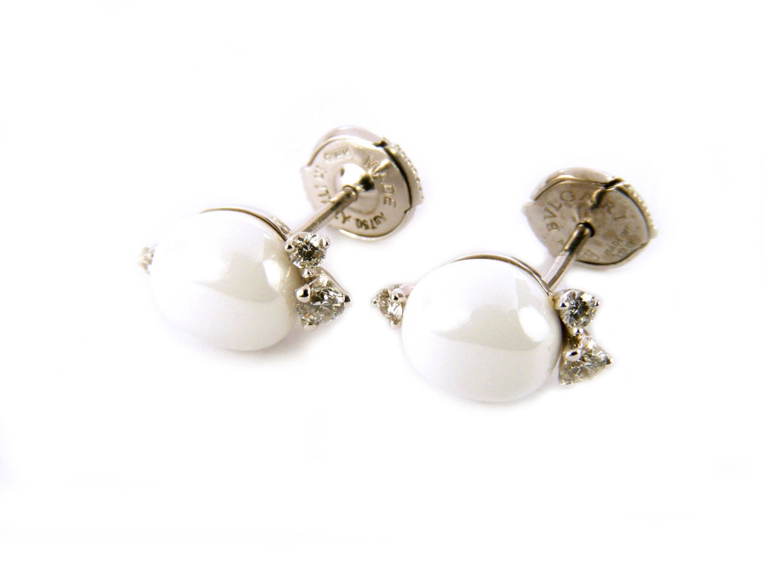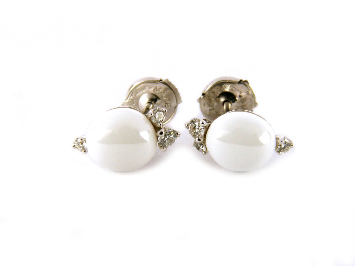 POMELLATO Ohrringe Capri in 18 Karat Weißgold mit weißen Keramik und Diamanten ct 0,23 Ref. OB609B9CB. NEU!