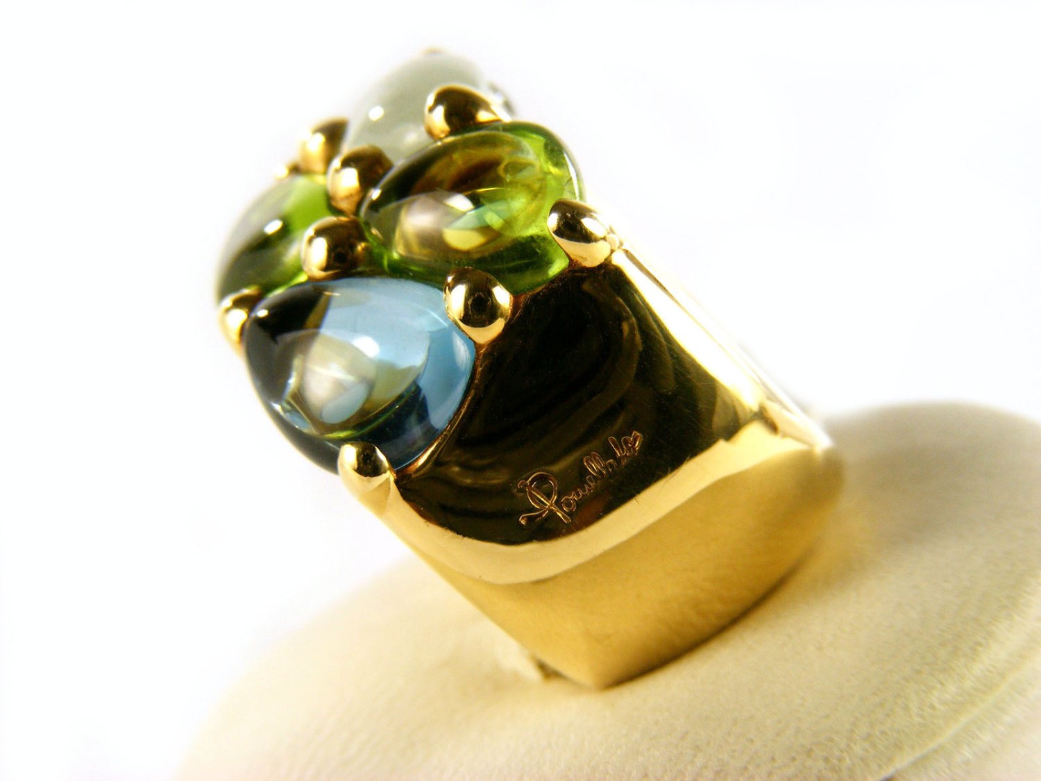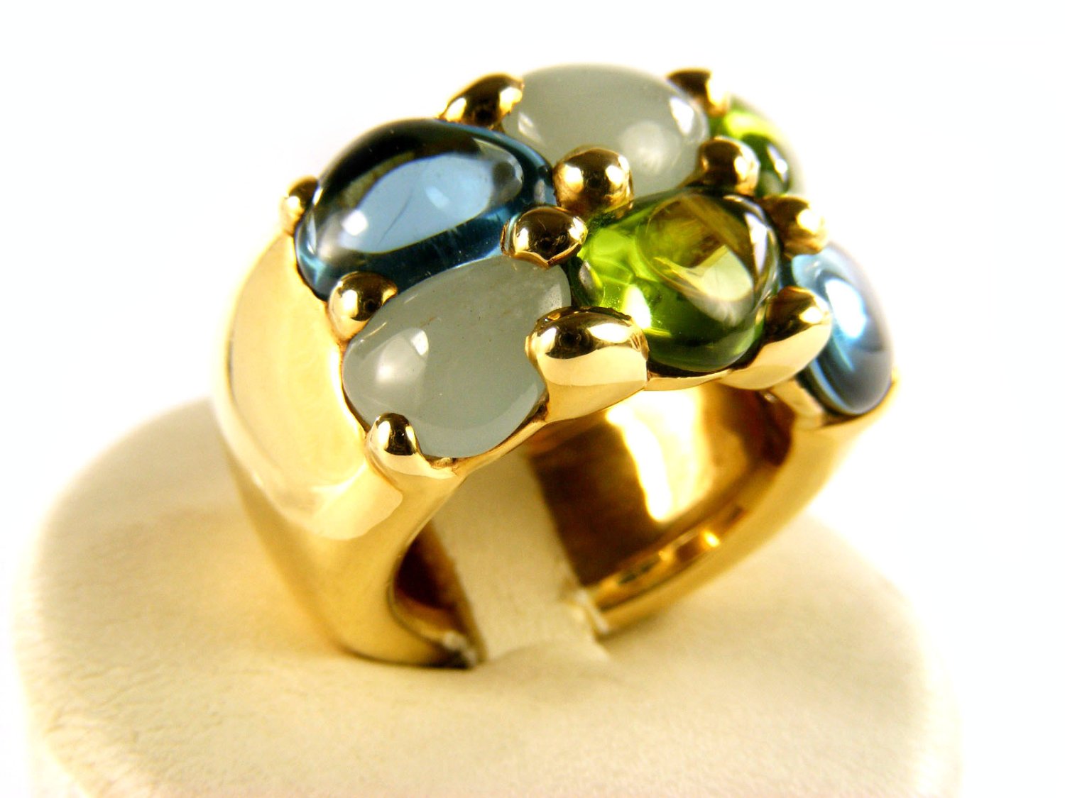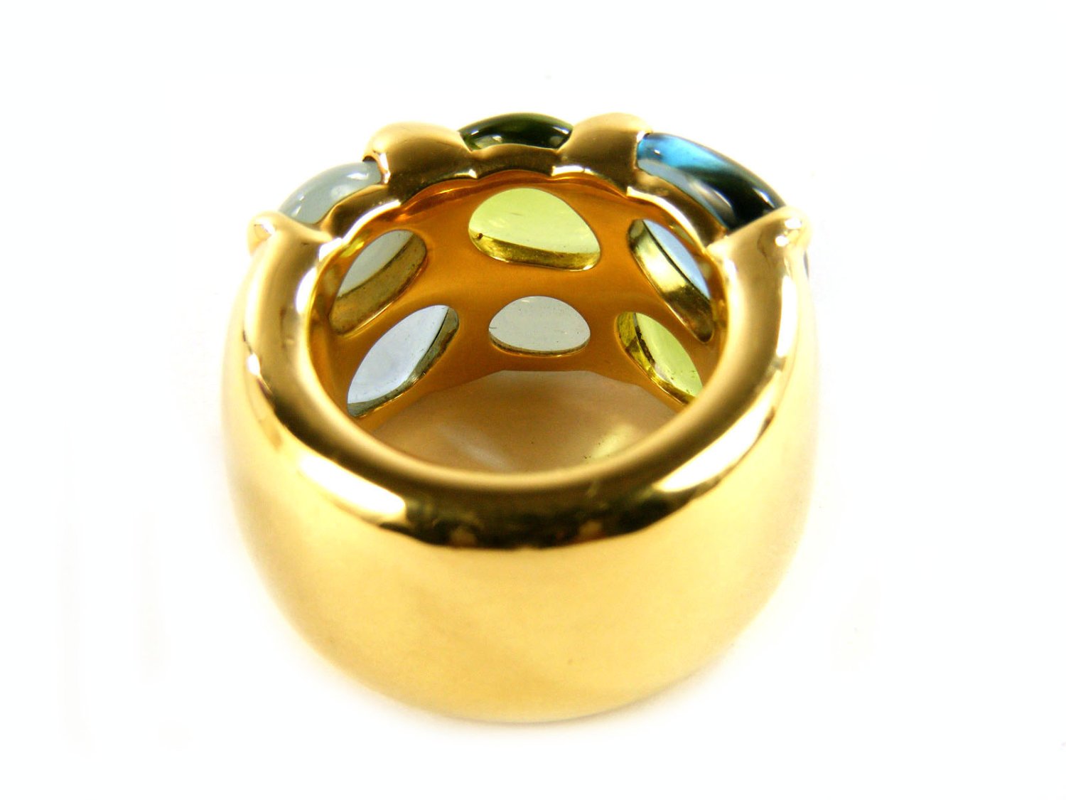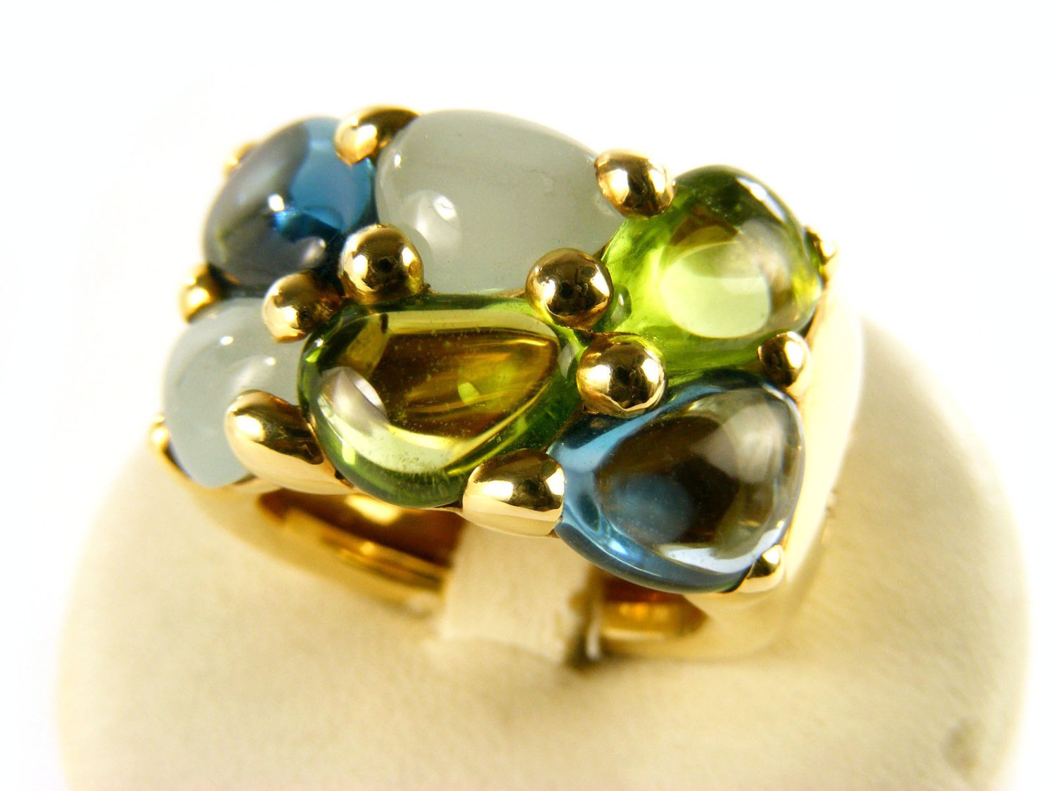 POMELLATO Ring Sassi in 18 Karat Gelbgold mit hellblauer Topaze-, Peridot- und Aquamarinmilch. AA302OFEI. NEU!
