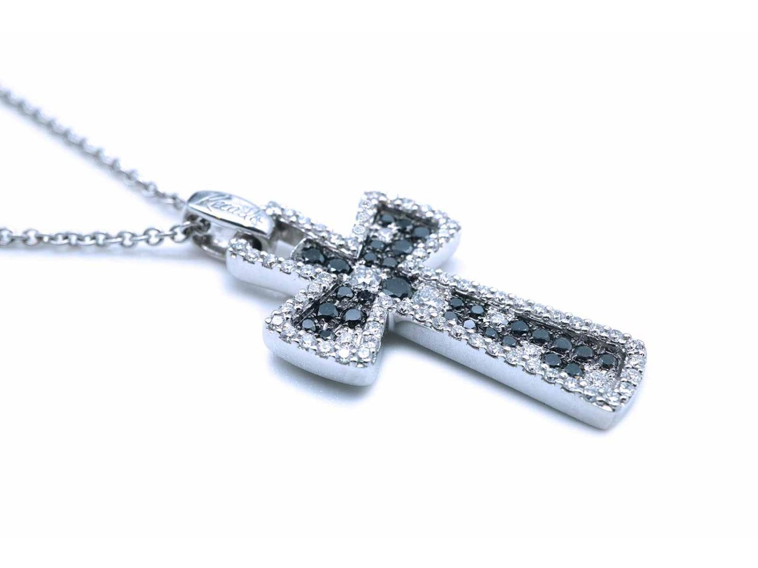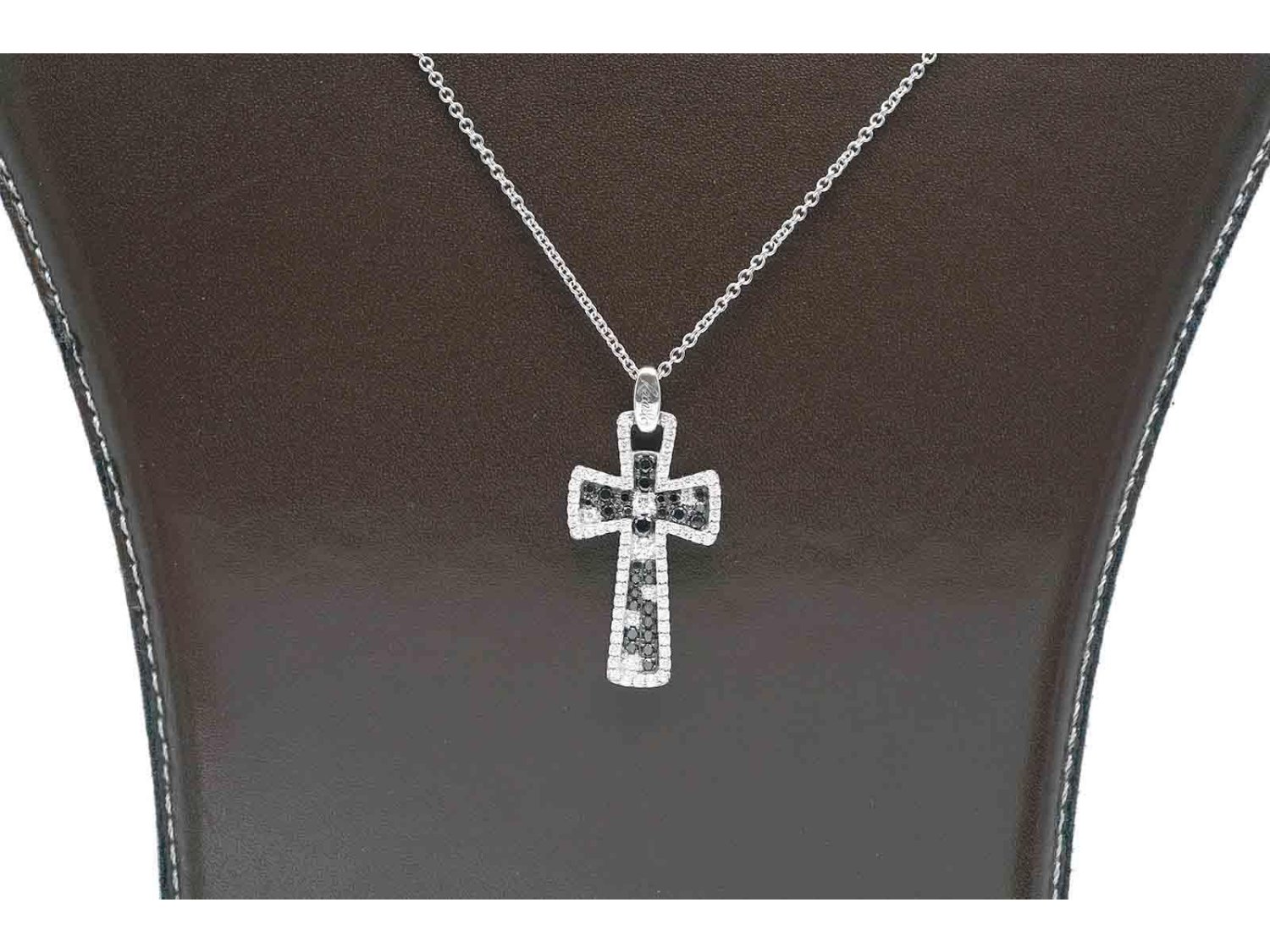 RECARLO collana Croce in oro bianco 18Kt con diamanti bianchi ct 0.56 e neri ct 0.36 Ref. XD014/BN. NUOVA!