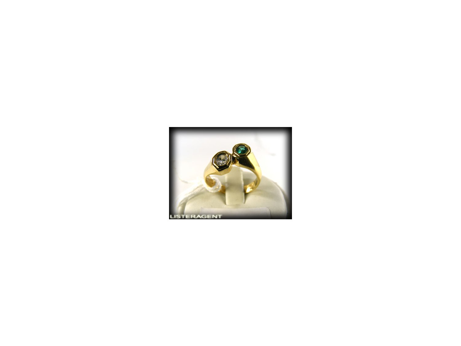 RING in 18 Karat Gelbgold Diamant und Smaragd Größe 14 Ref. A193. NEU!