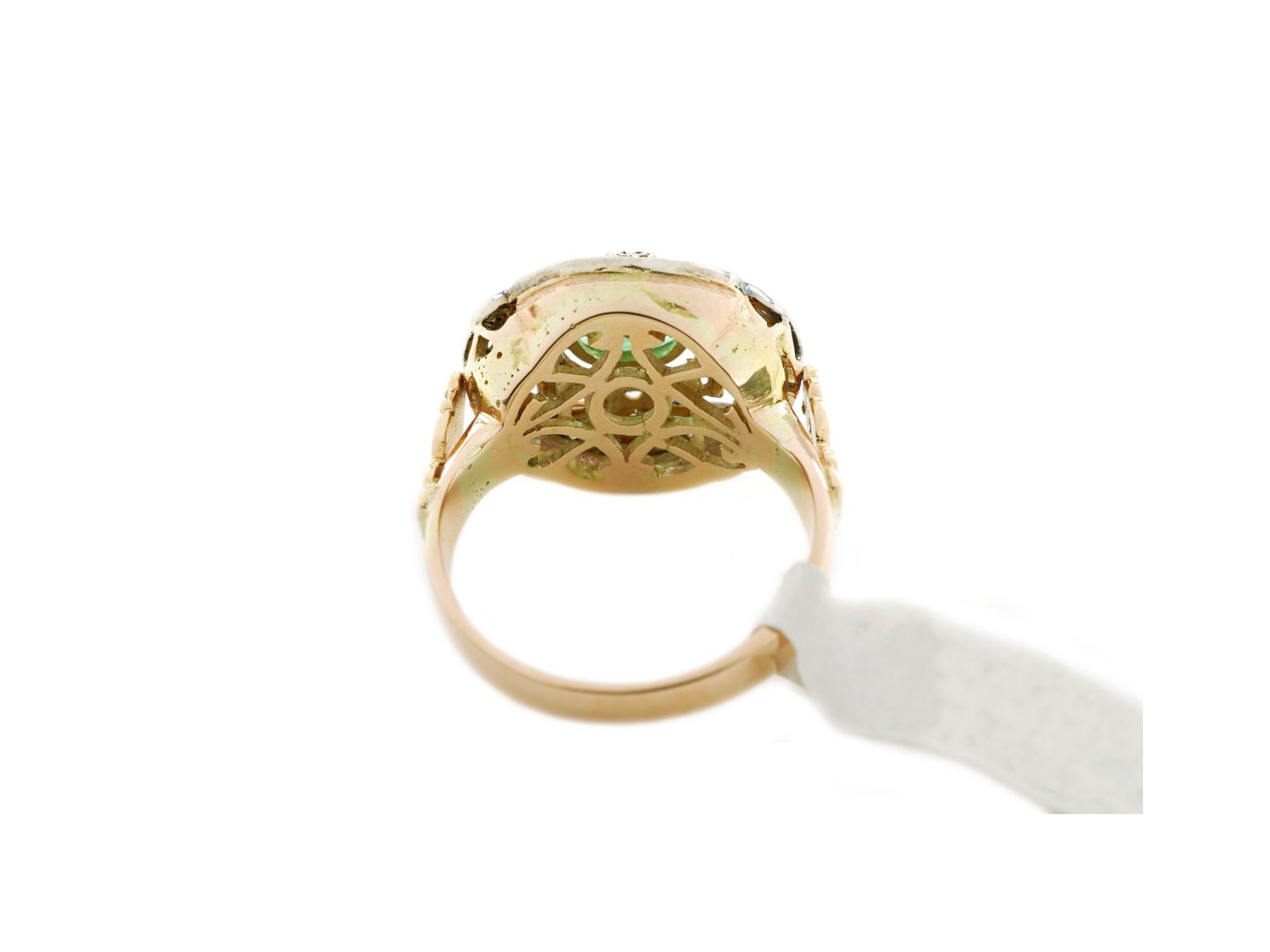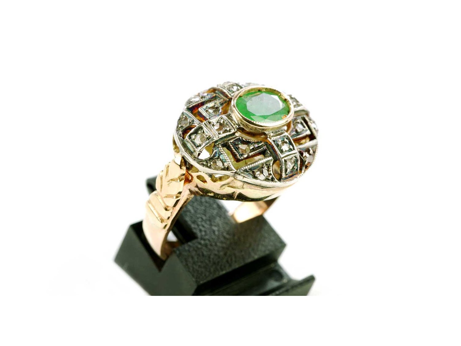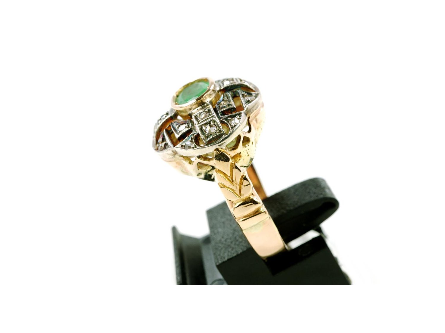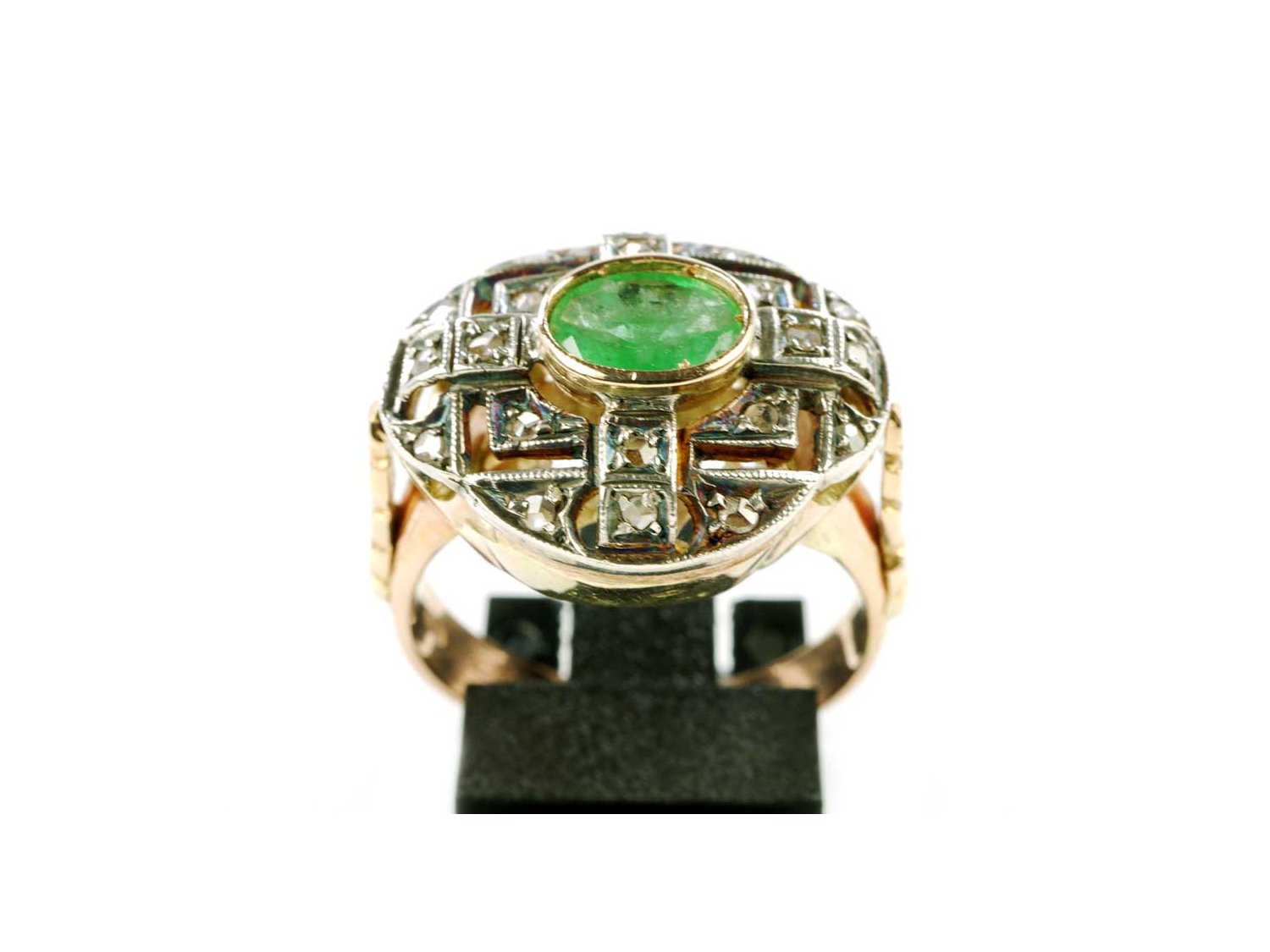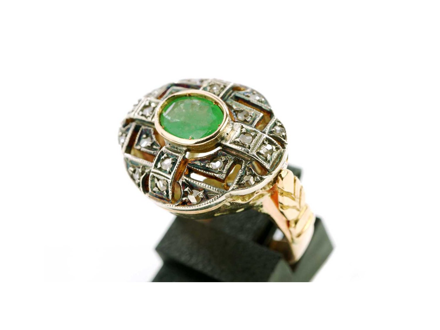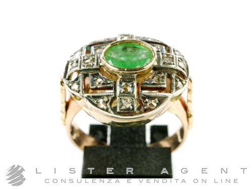 RING Vintage aus 18Kt Gold mit Diamanten ct 0.15 und Smaragd ct 0.60 Größe 16.50. NEU!
