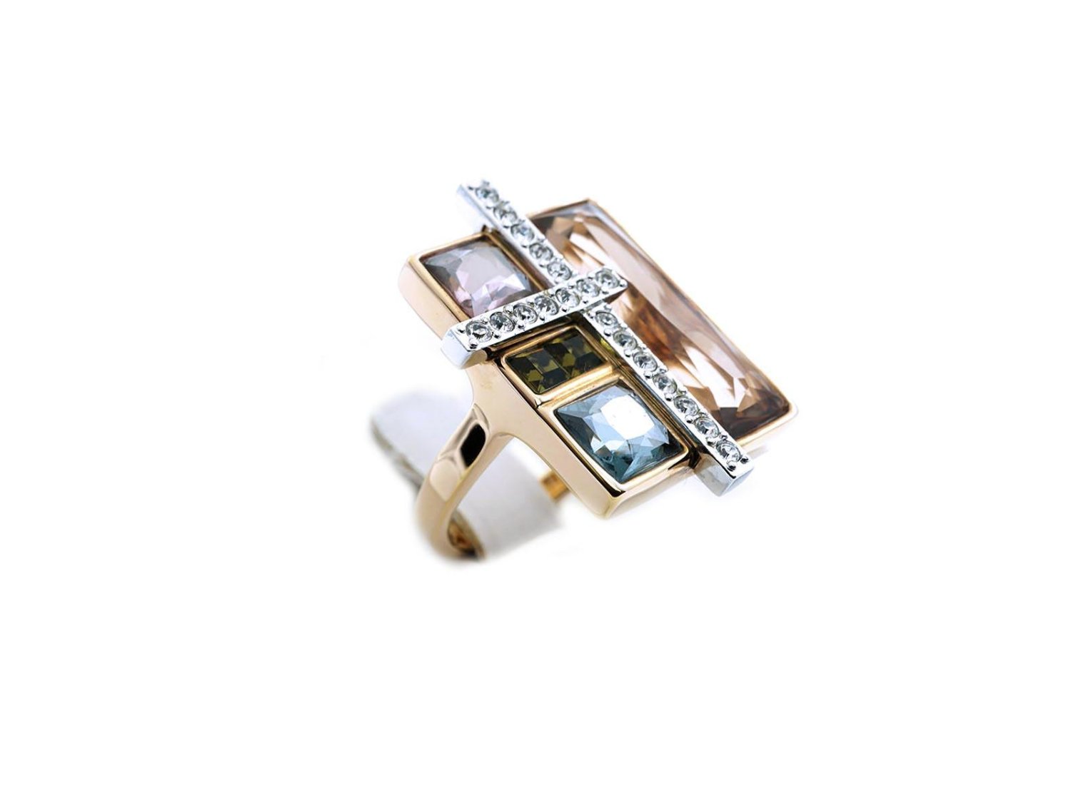 SWAROVSKI anello Mosaic in metallo placcato oro rosa e cristalli bianchi e colorati Misura 15. NUOVO!