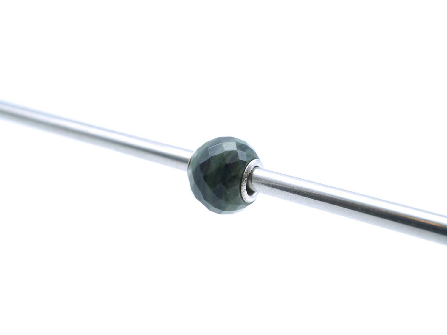 TROLLBEADS beads in argento 925 e pietra naturale verde striata nera sfaccettata. NUOVO!