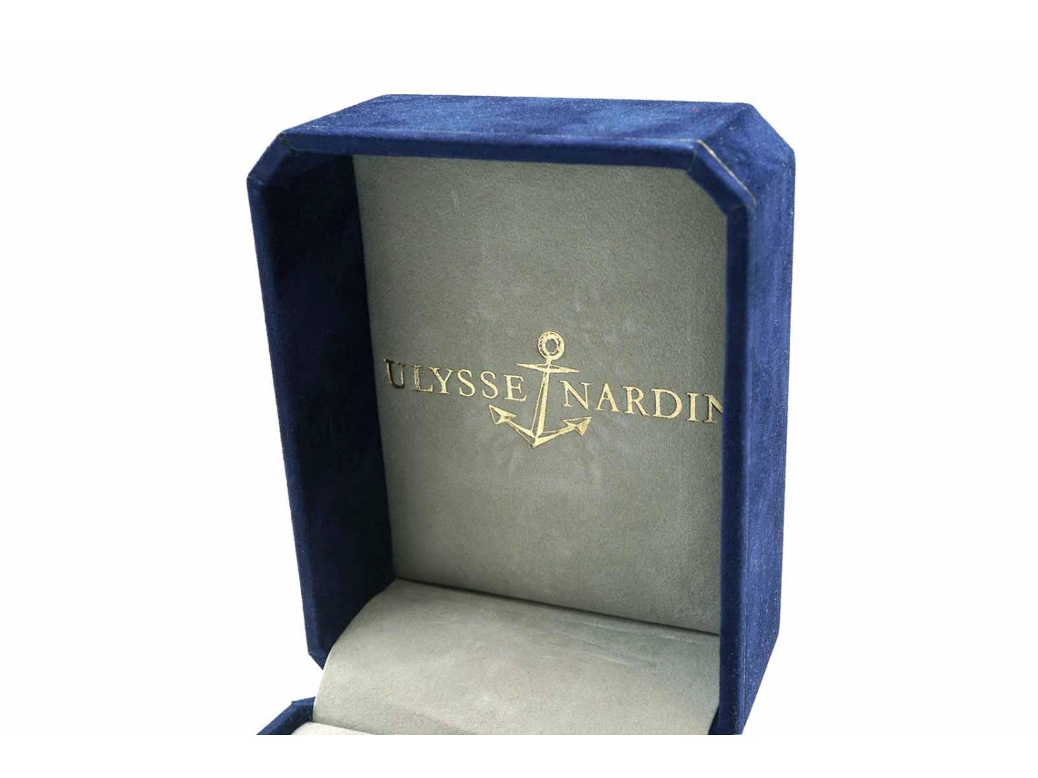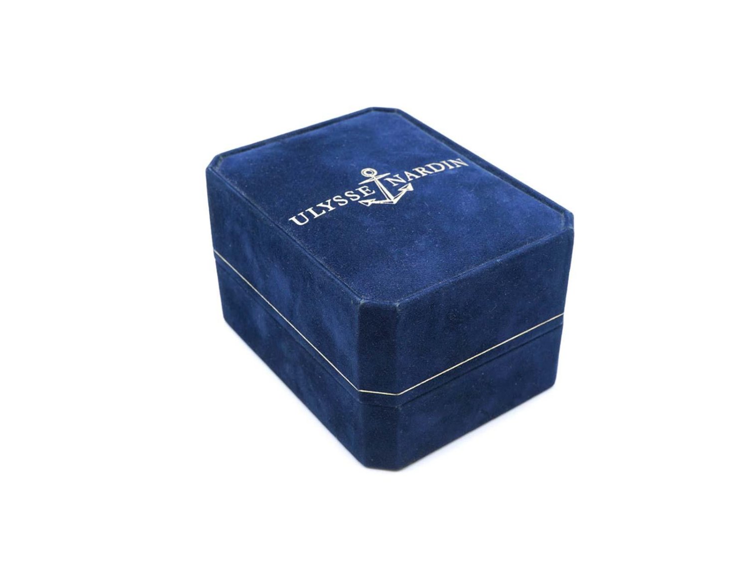ULYSSE NARDIN scatola per orologio in alcantara blu. NUOVA!