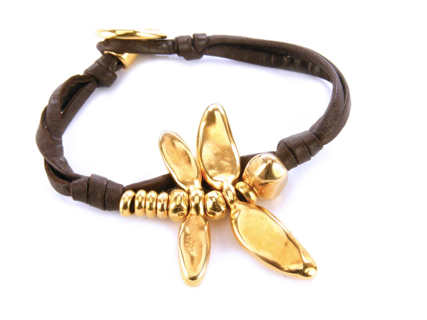 UNO DE 50 Armband Circulating in gelb vergoldetem Metall und Leder Brown Ref. No. 1366. NEU!