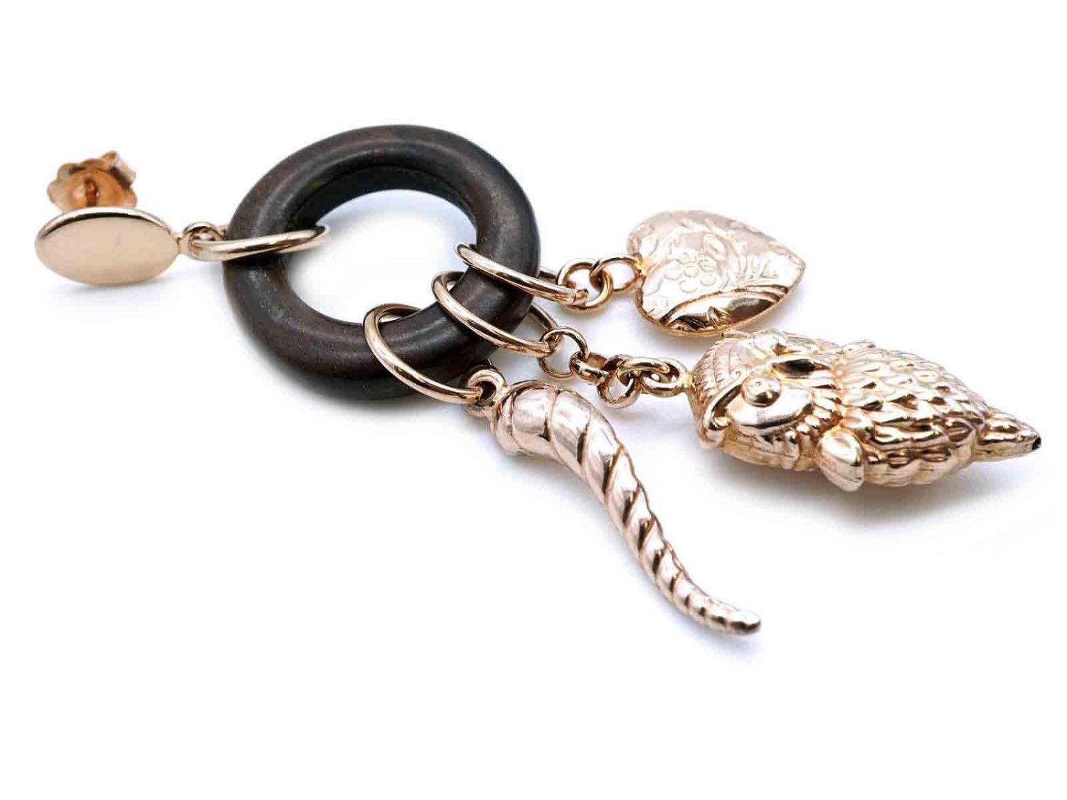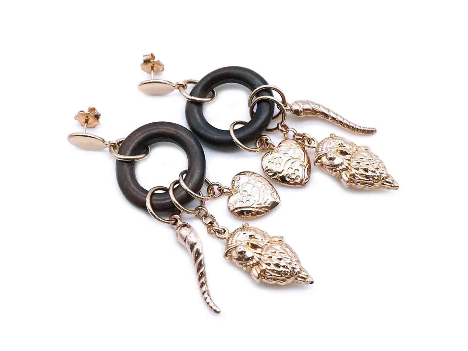 VANTO orecchini Cuori Gufi e Cornetti in argento 925 placcato oro rosa e pietre naturali Ref. OR1350AG. NUOVI!