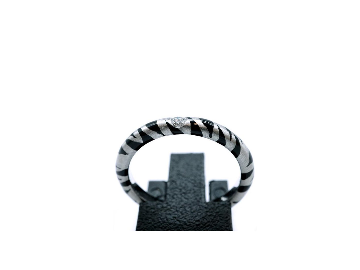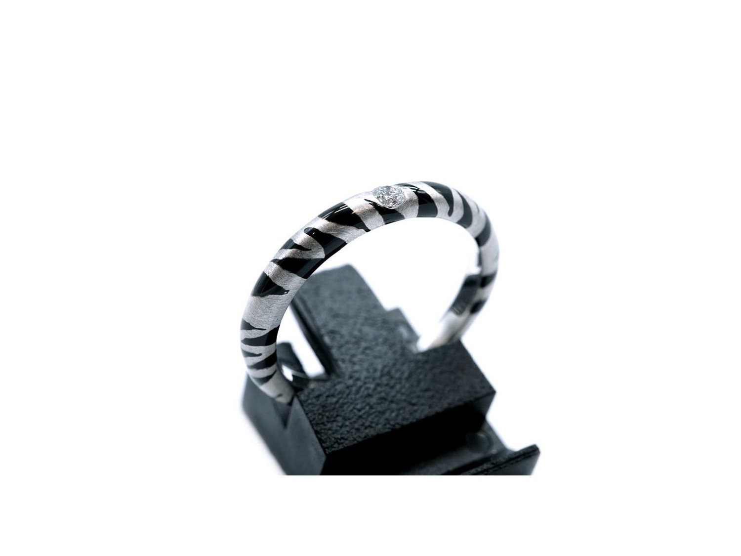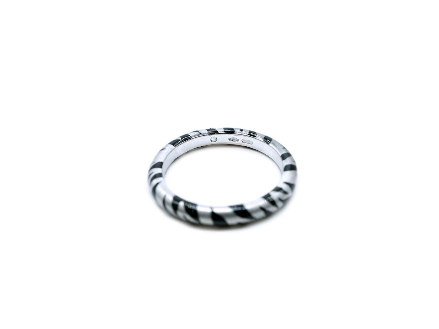 ADOLFO COURRIER anello in oro bianco 18Kt con diamante e smalto grigio e nero Mis 14.5 Ref. ANP2TBW02. NUOVO!