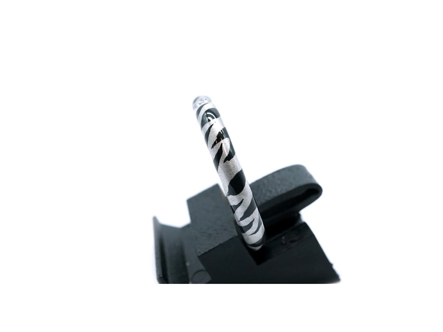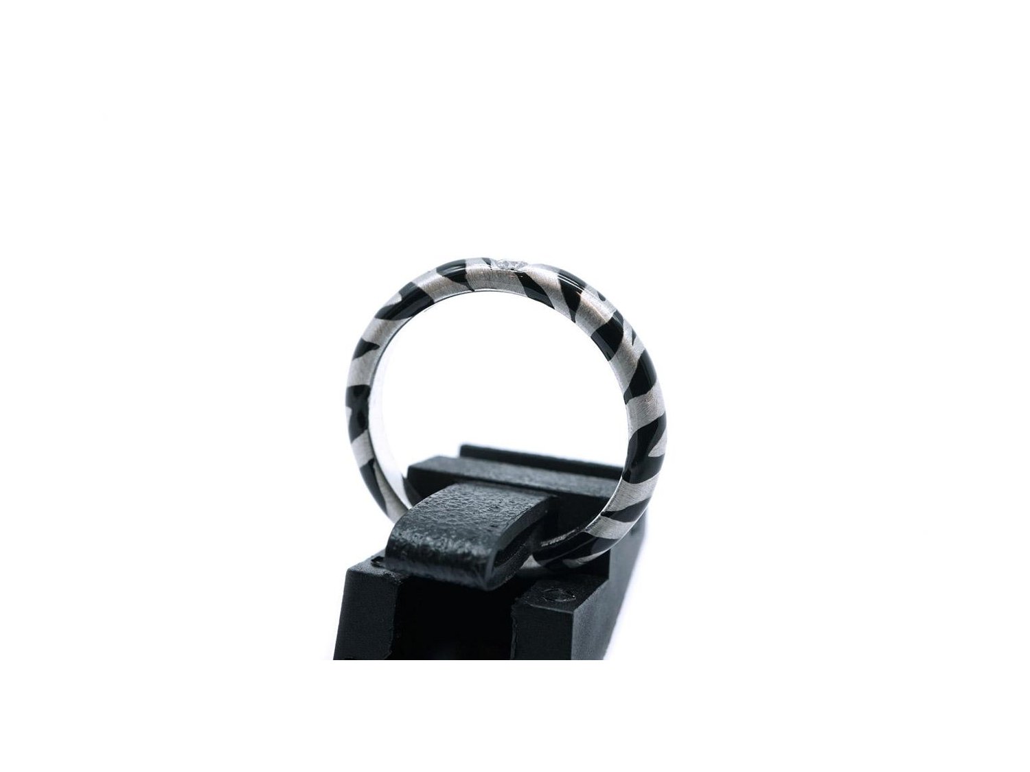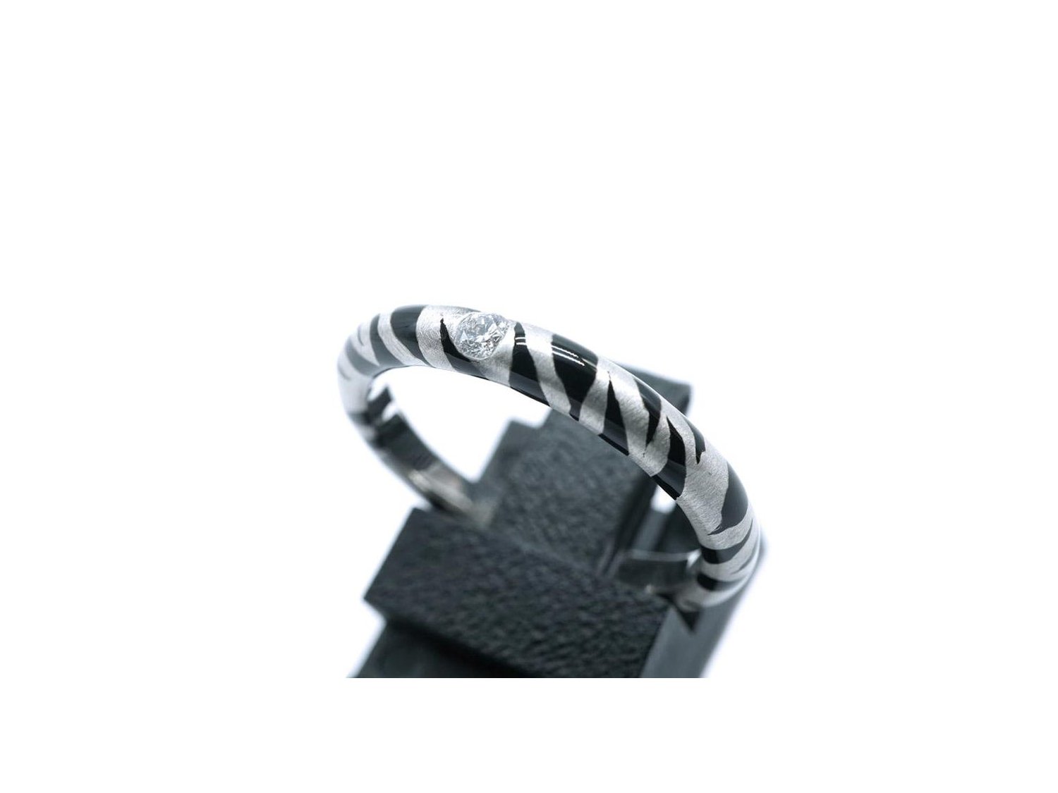 ADOLFO COURRIER anello in oro bianco 18Kt con diamante e smalto grigio e nero Mis 14.5 Ref. ANP2TBW02. NUOVO!