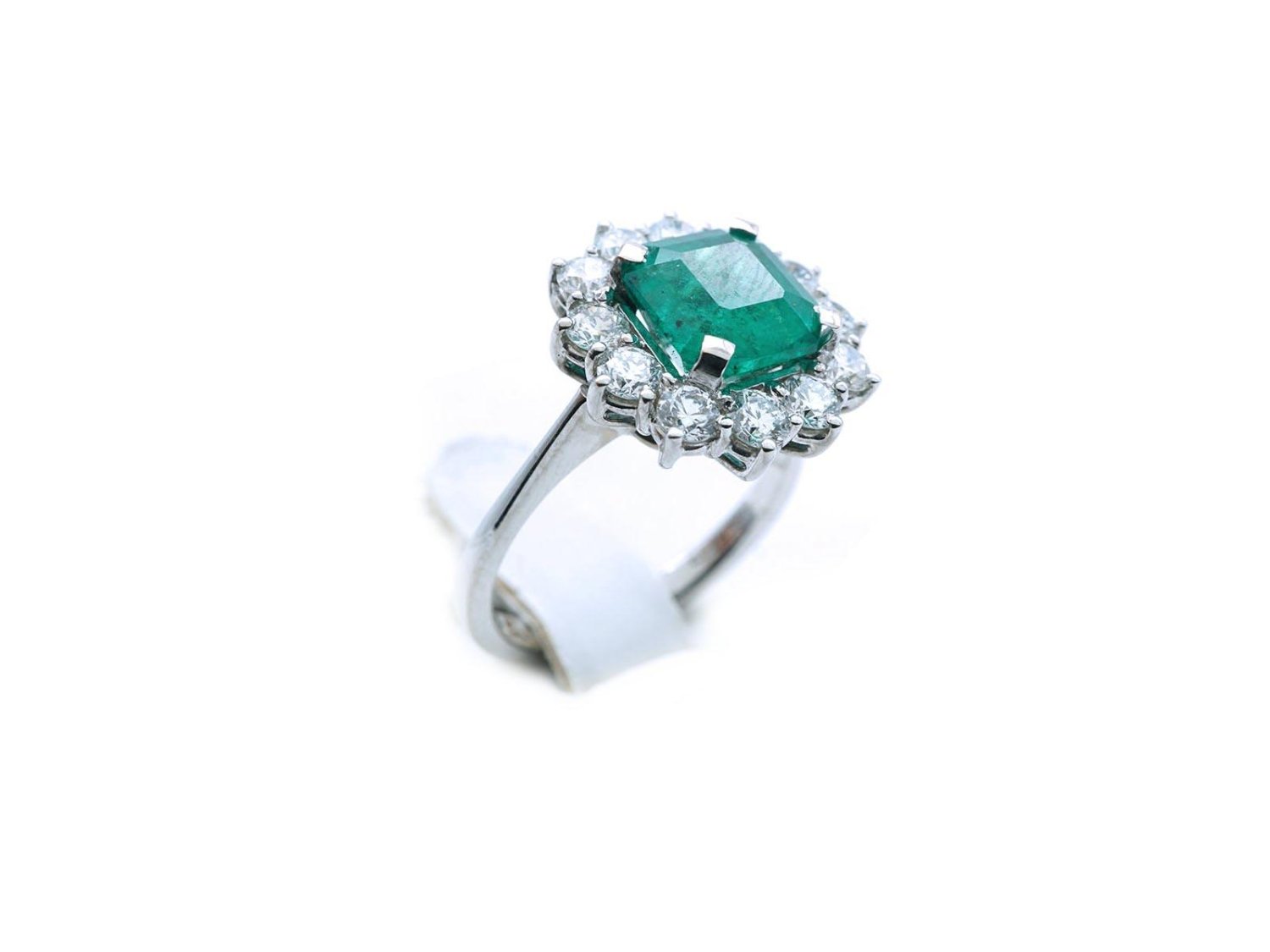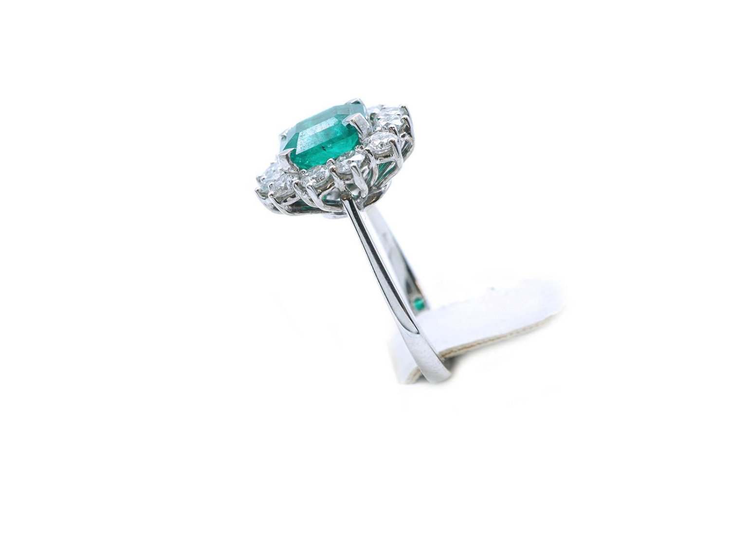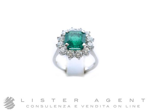 ANELLO Cestino in oro bianco 18Kt con diamanti ct 0.96 G Vs e smeraldo ct 2.16 Misura 14 Ref. AN45. NUOVO!
