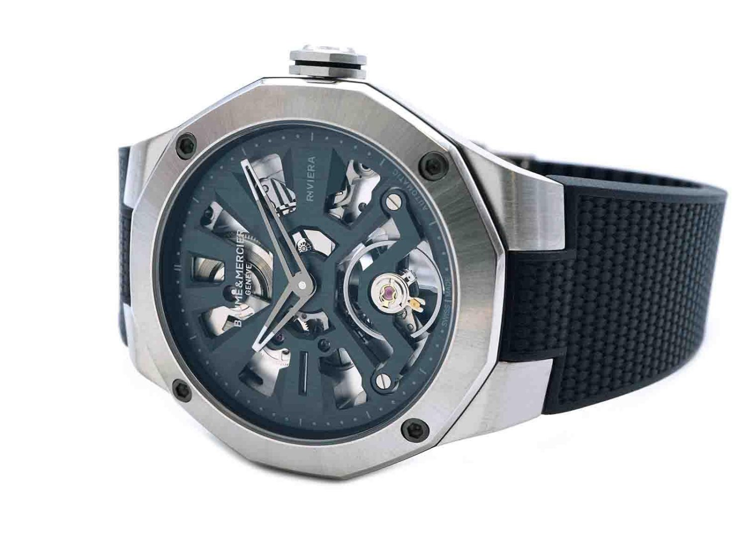 BAUME & MERCIER orologio Riviera 10721 MM 42 automatico in acciaio Scheletrato Nero Ref. 10721. NUOVO!