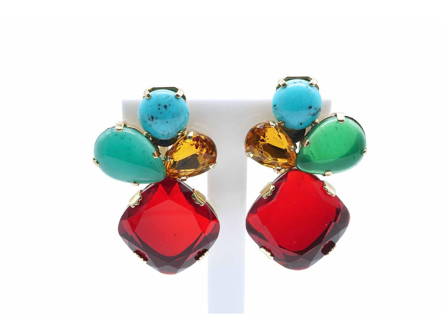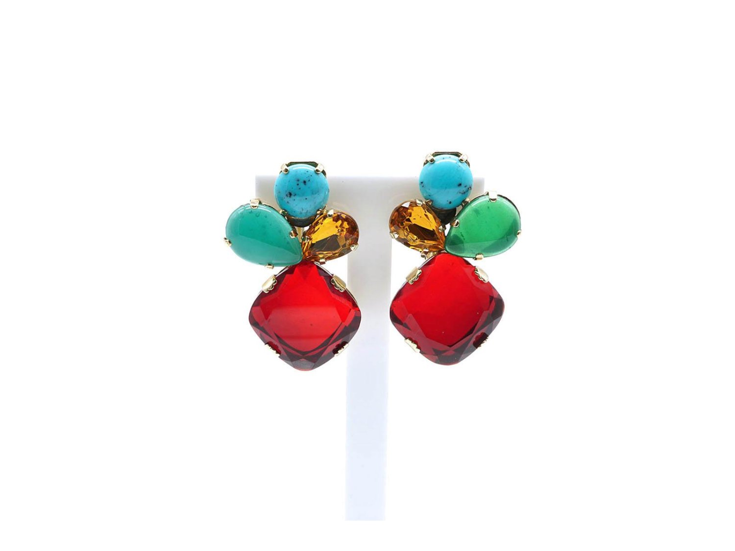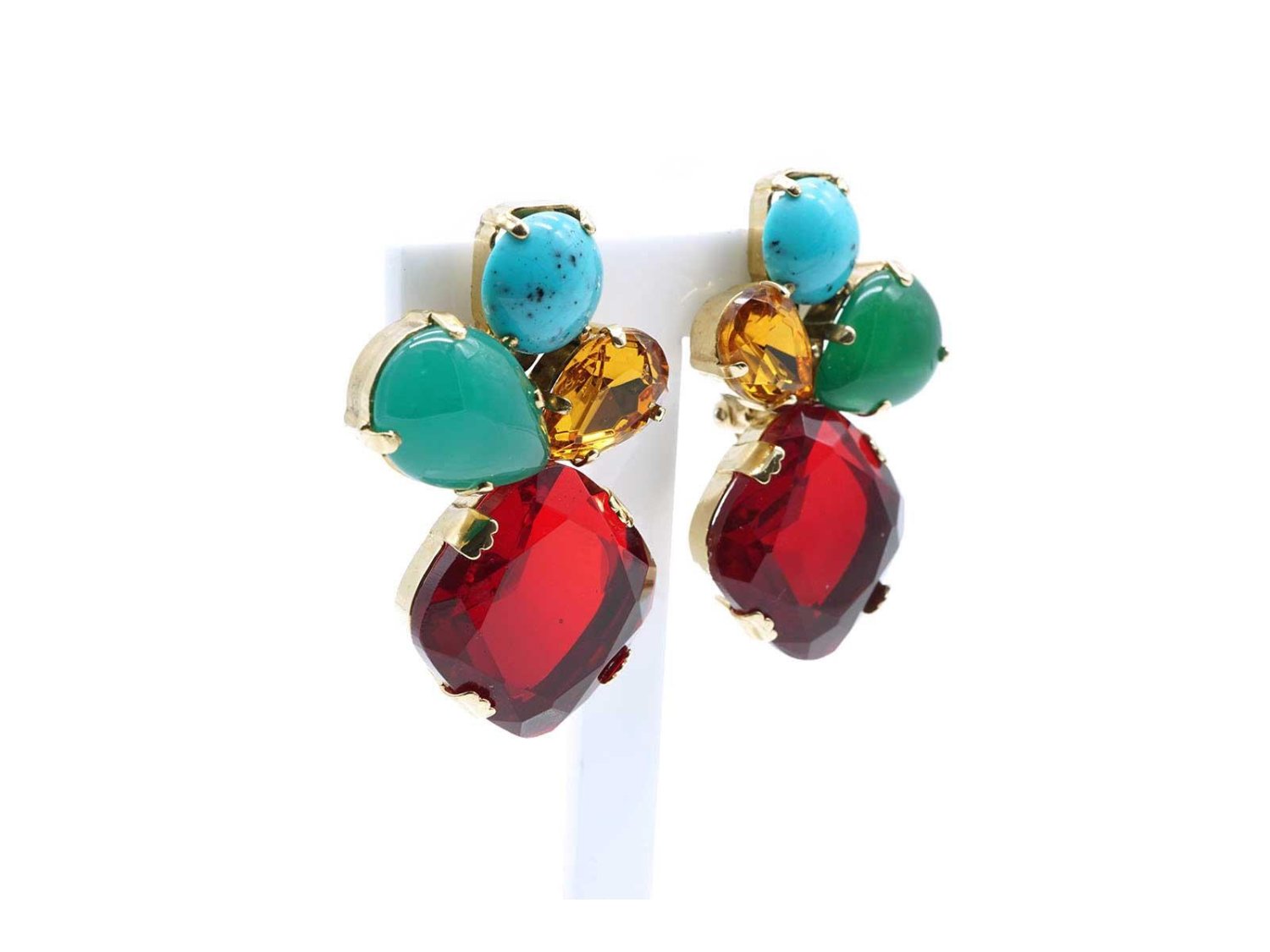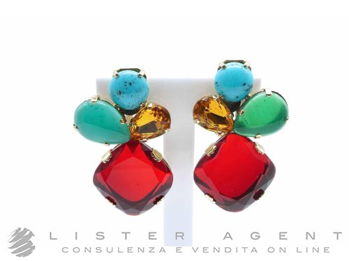 CARLO ZINI orecchini in metallo placcato oro e pietre colorate Ref. BOTO1742. NUOVI!