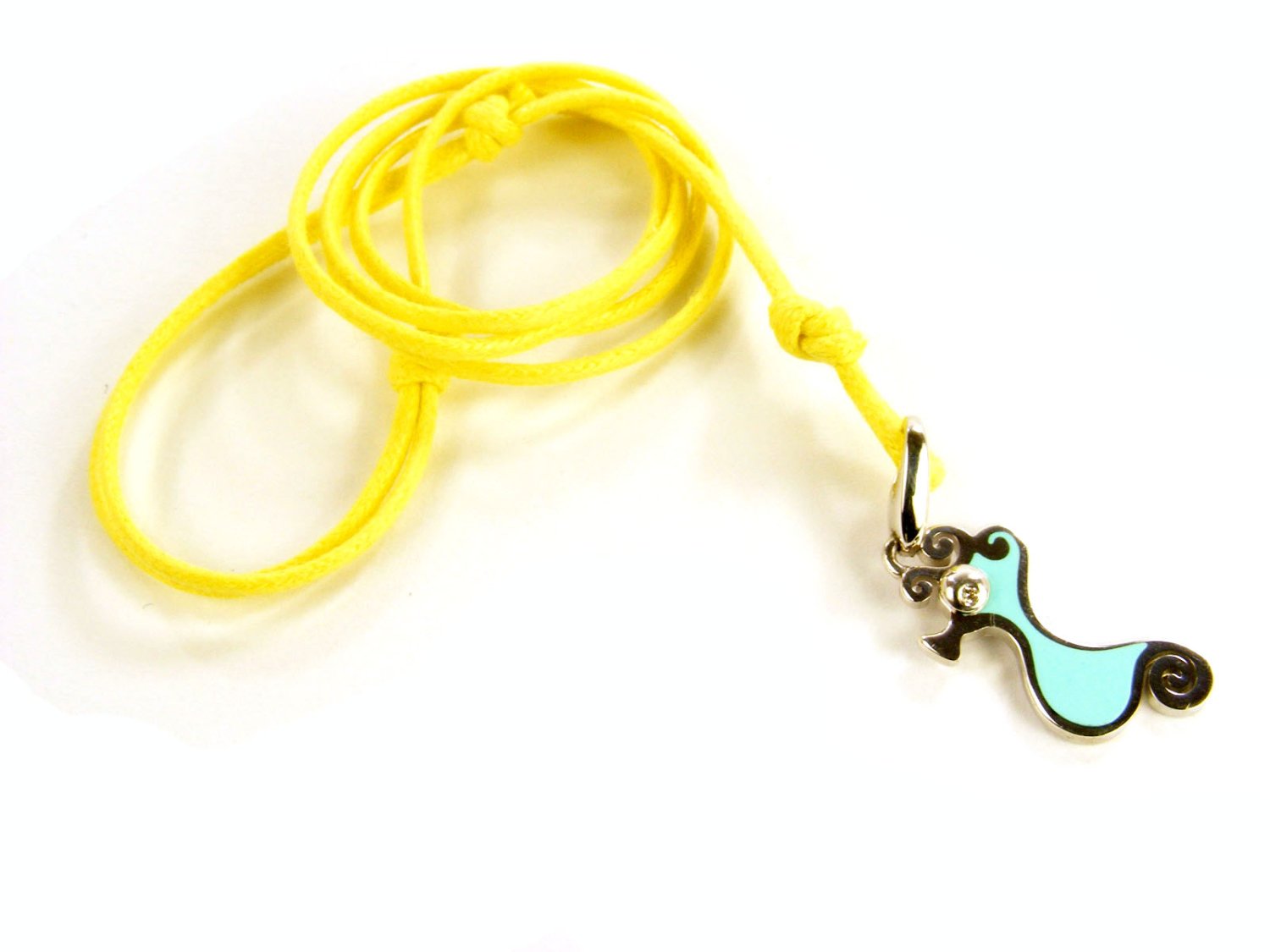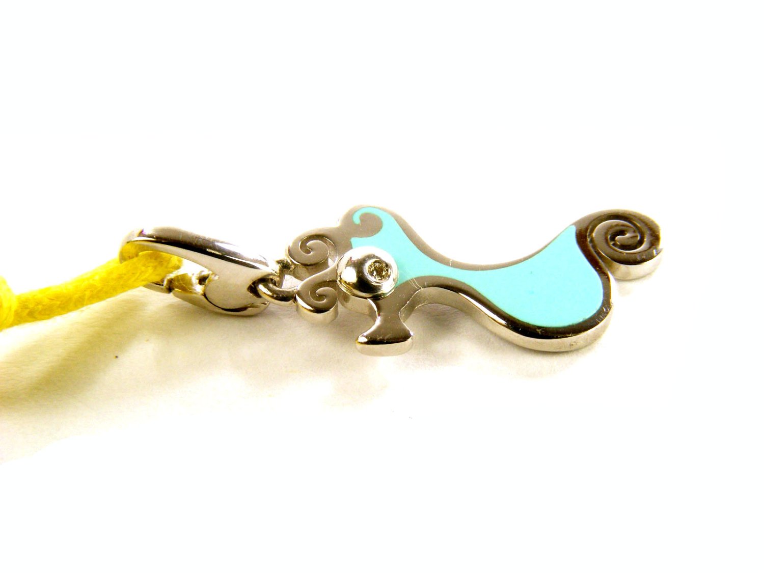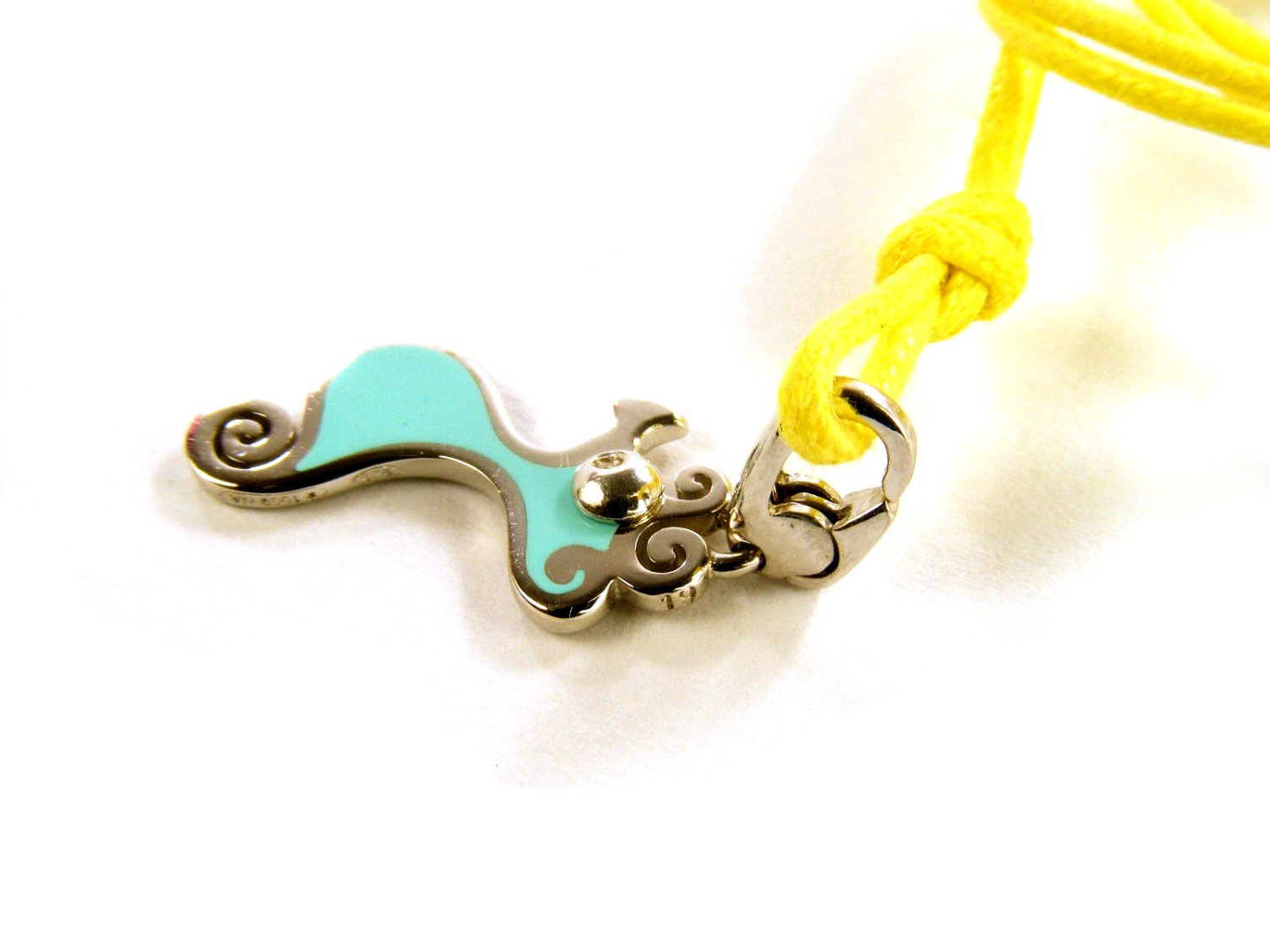 CHANTECLER pendant Scugnizzi Mini Sea Horse in 925 silver and light blue enamel with diamonds Ref. 35582. NEW!