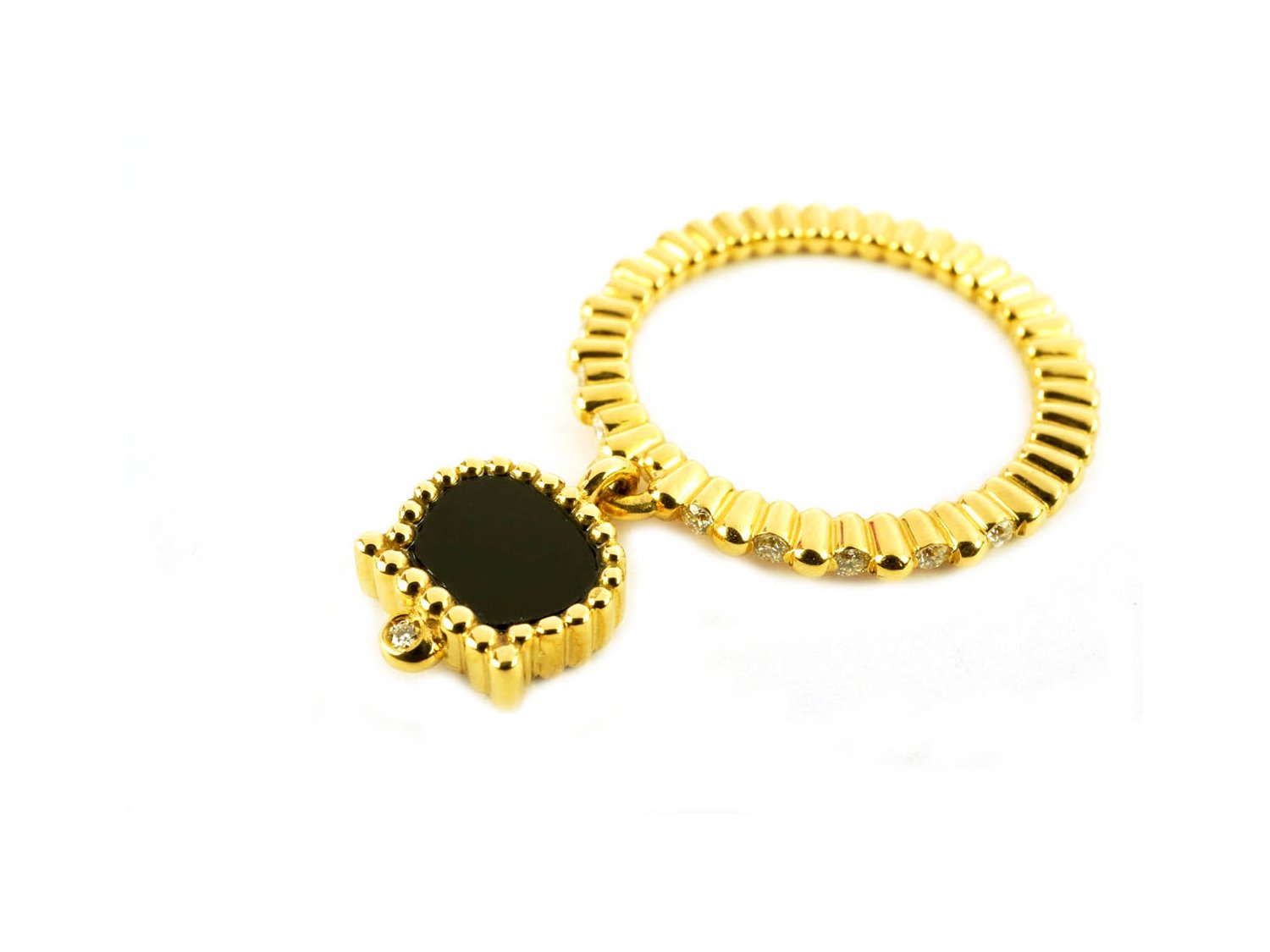 CHANTECLER ring Anima 70 with Campanella micro in 18Kt yellow gold with onyx and diamond Ref. 37076. NEW!