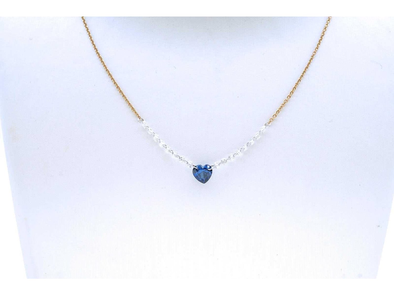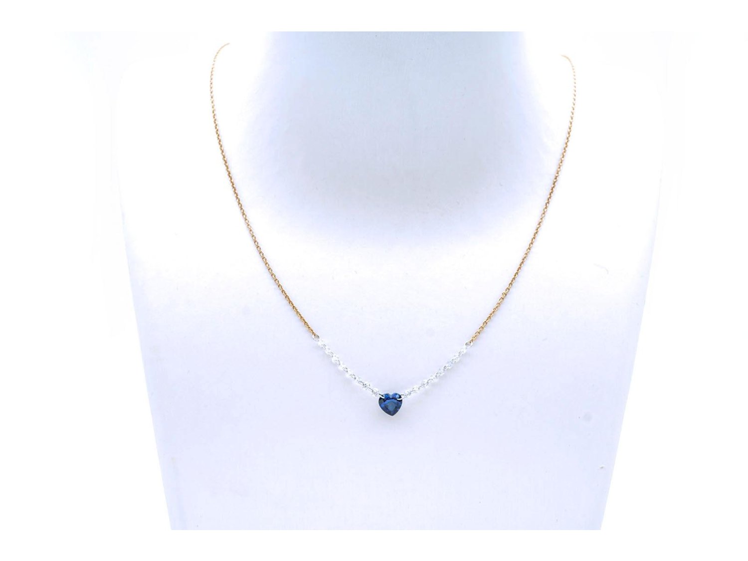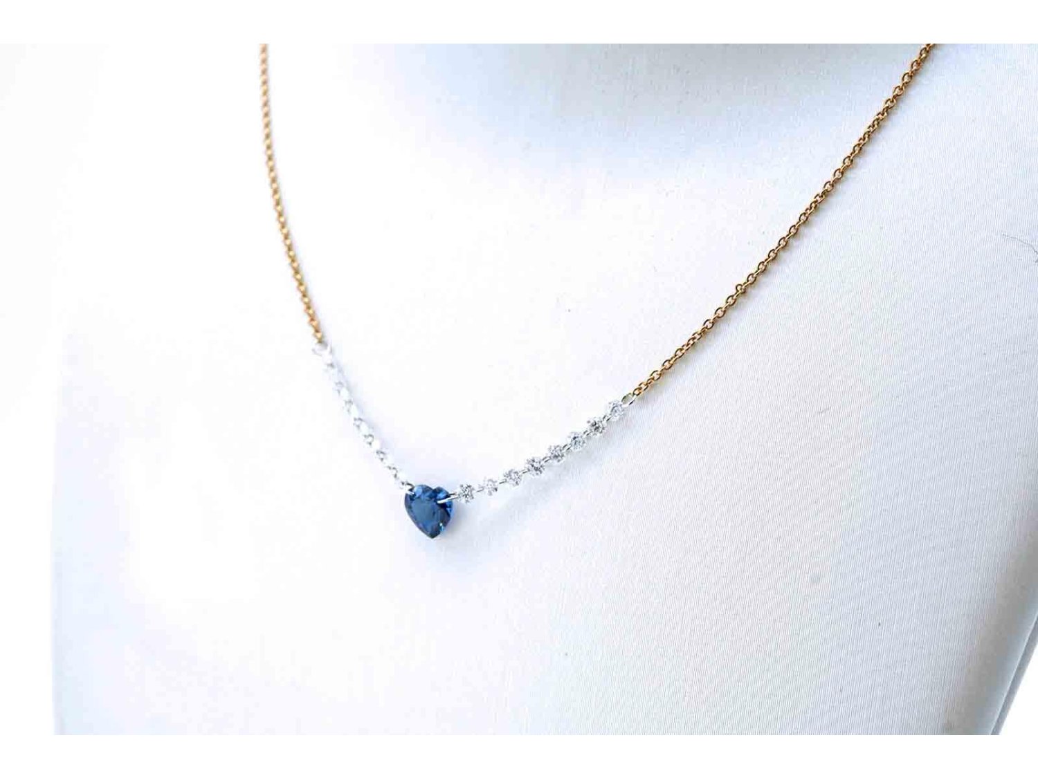 COLLANA con Cuore in oro rosa 18Kt con diamanti ct 0.48 e zaffiro blu ct 0.64 Ref. C069/32-S0. NUOVO!