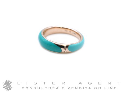DODO by Pomellato anello rondelle in argento 925 placcato oro rosa 18Kt con smalto bi-color turchese Ref. DAC3008_RONDE_TURAG. NUOVO!