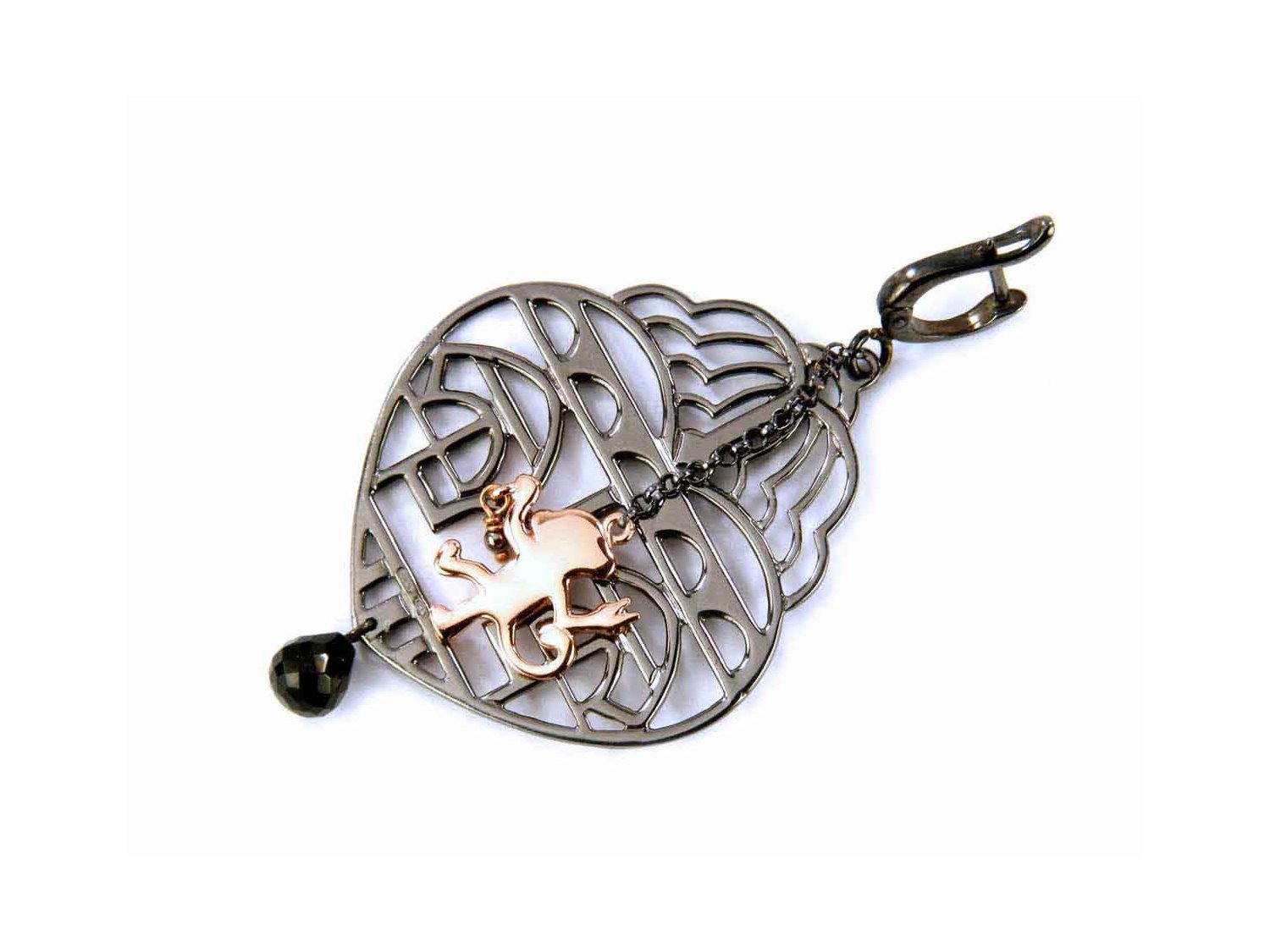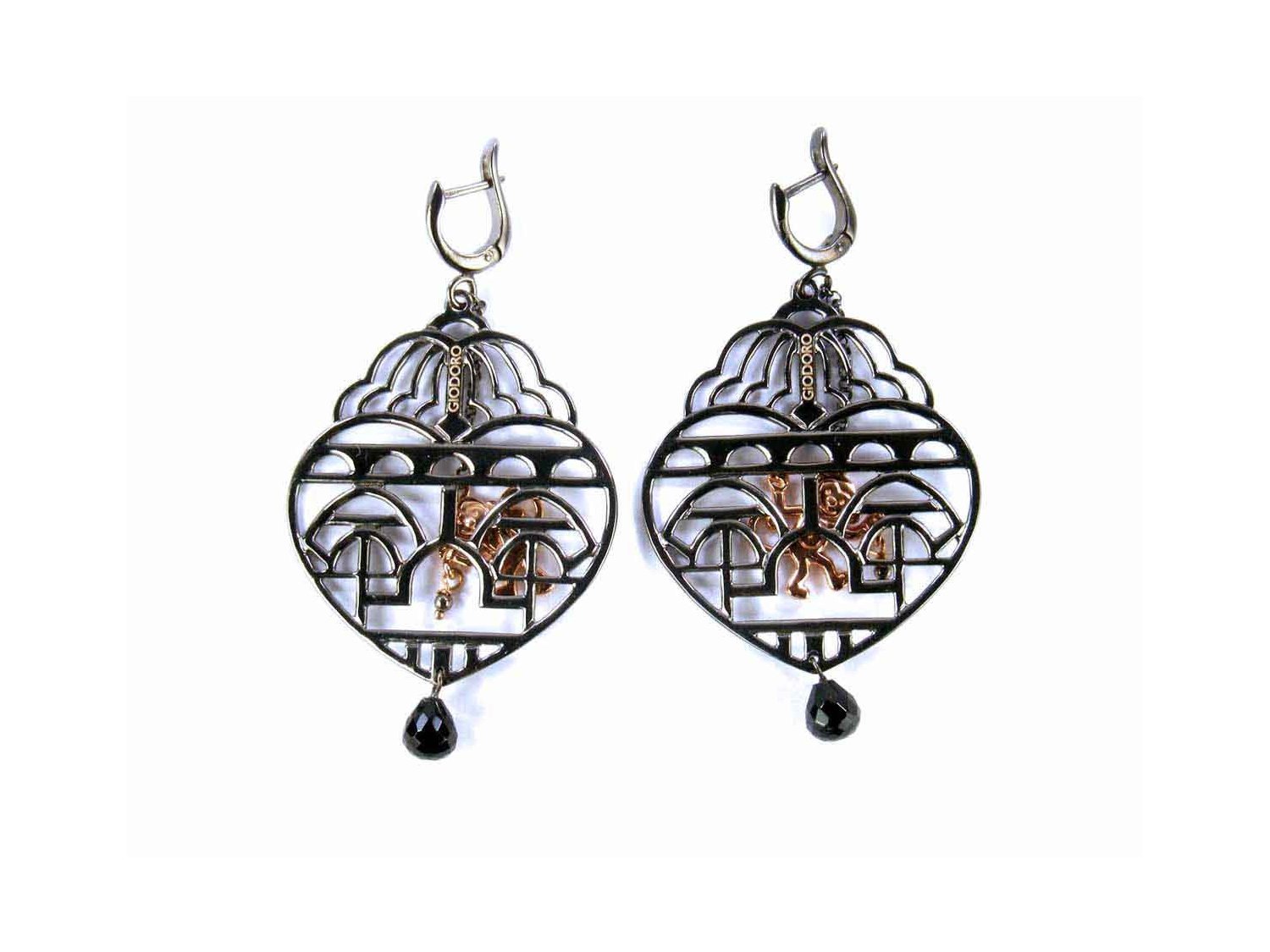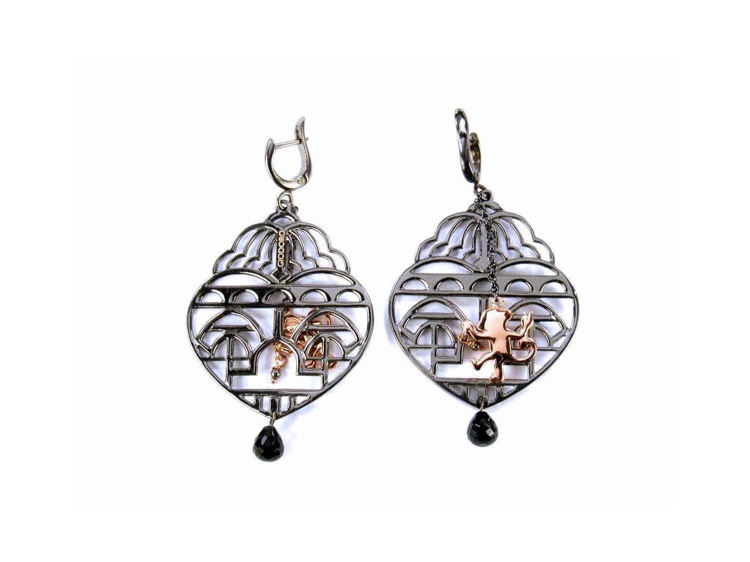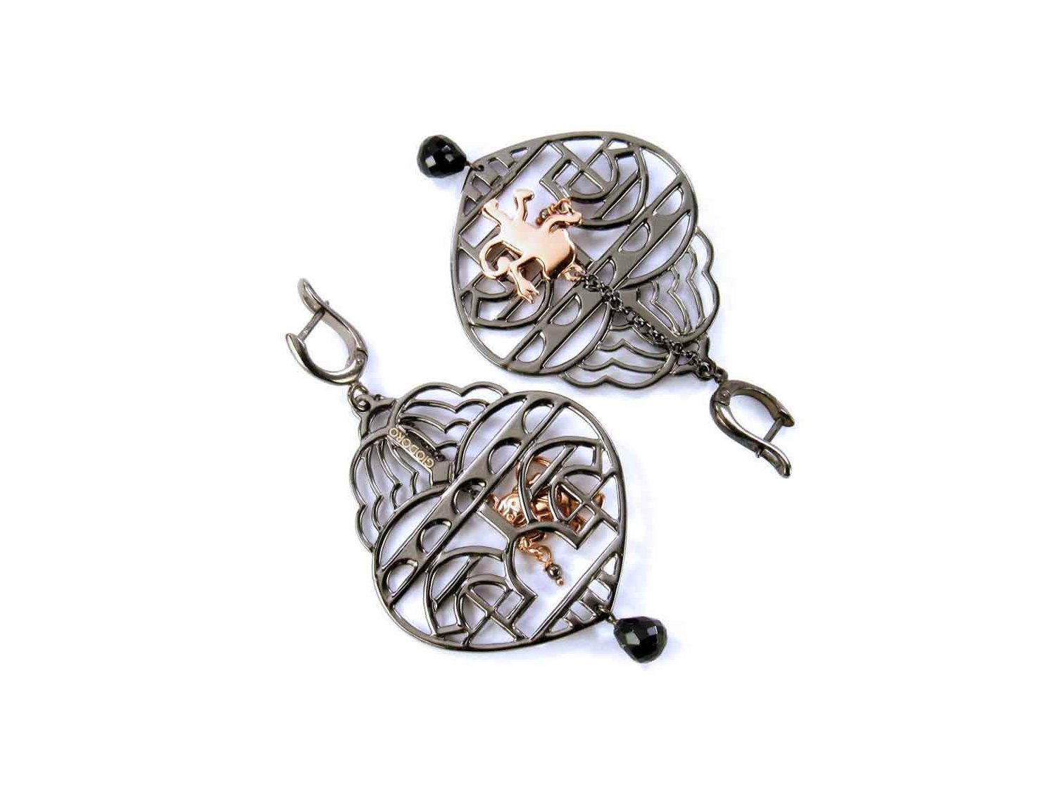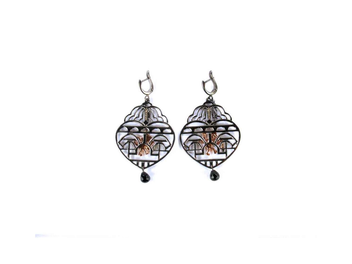 GIODORO Monkey earrings in burnished and rose gold plated 925 silver with black agate Ref. ORA1414-2. NEW!
