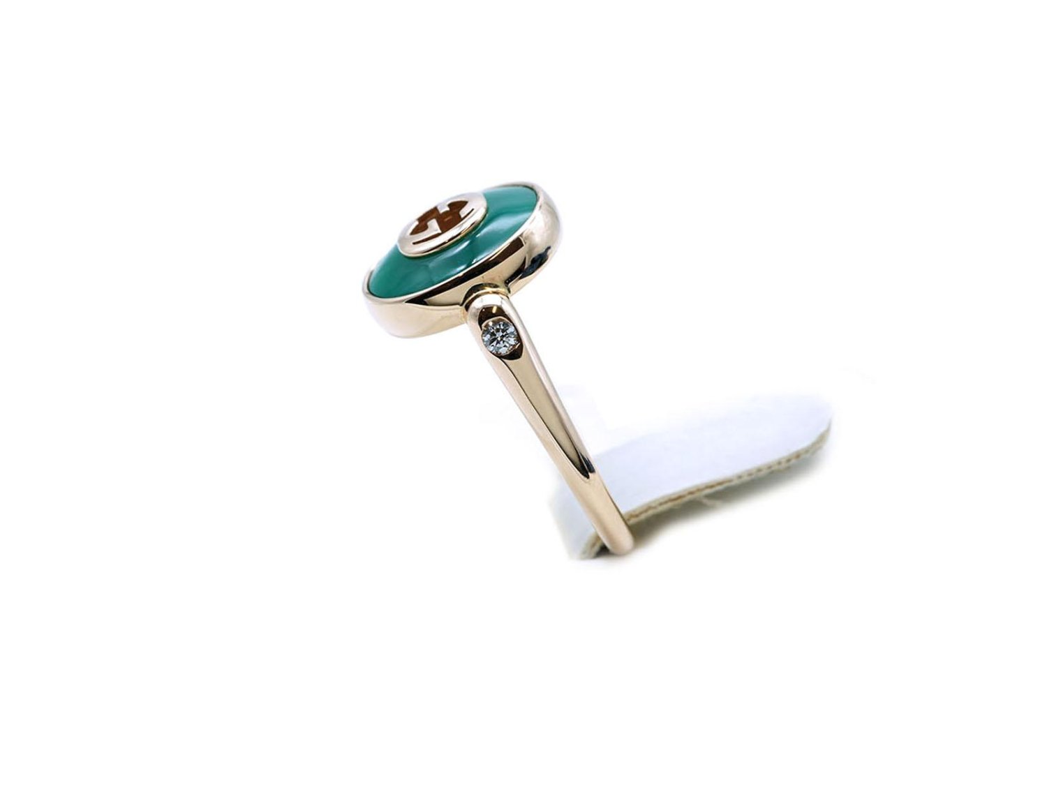 GUCCI anello Interlocking G 12MM in oro giallo 18Kt con diamanti ct 0,04 e agata verde Ref. YBC7865470020. NUOVO!