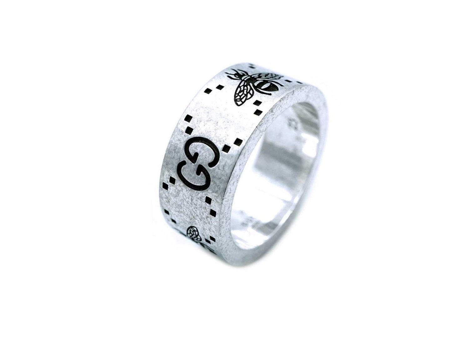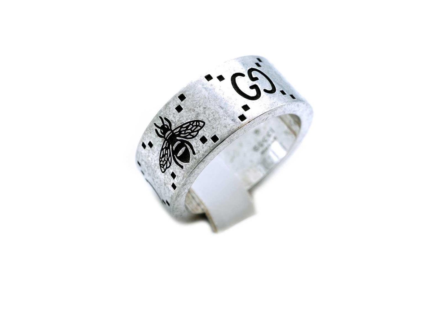 GUCCI anello Signature GG & Bee in argento 925 Ref. YBC7283040010. NUOVO!