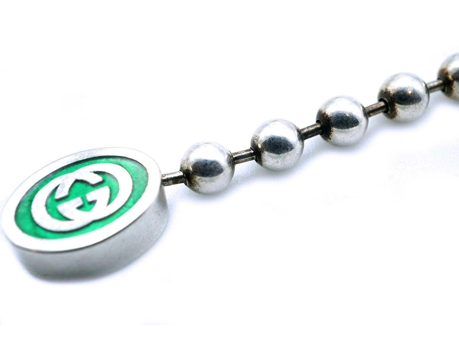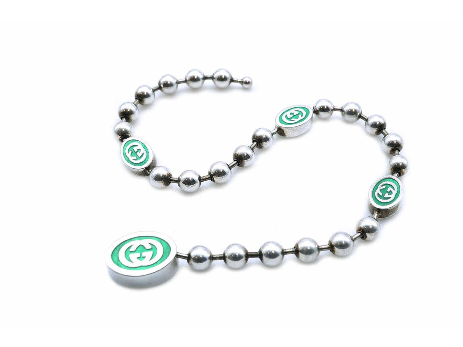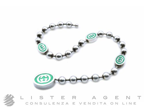 GUCCI bracciale Boule Interlocking GG in argento 925 e smalto verde Ref. YBA701609001019. NUOVO!