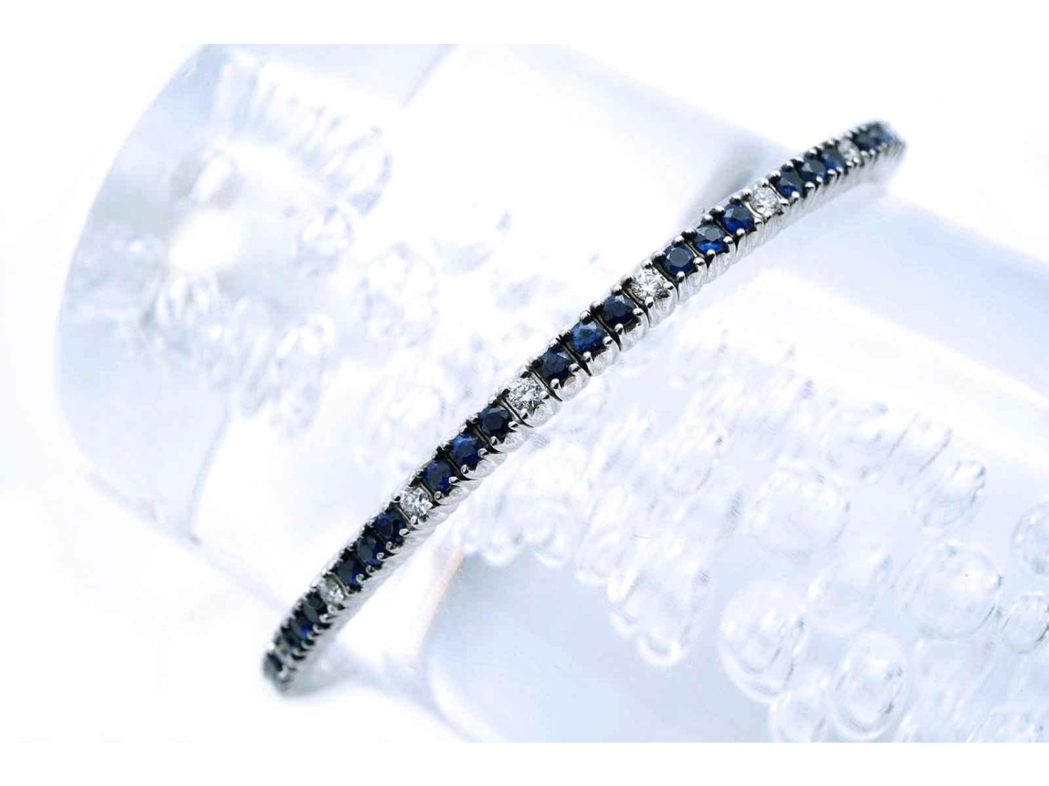 JARRETIERE bracciale elastico Tennis in oro bianco 18Kt con diamanti ct 0.50 e zaffiri blu ct 2.26 Ref. BRF-3ZF/W. NUOVO!