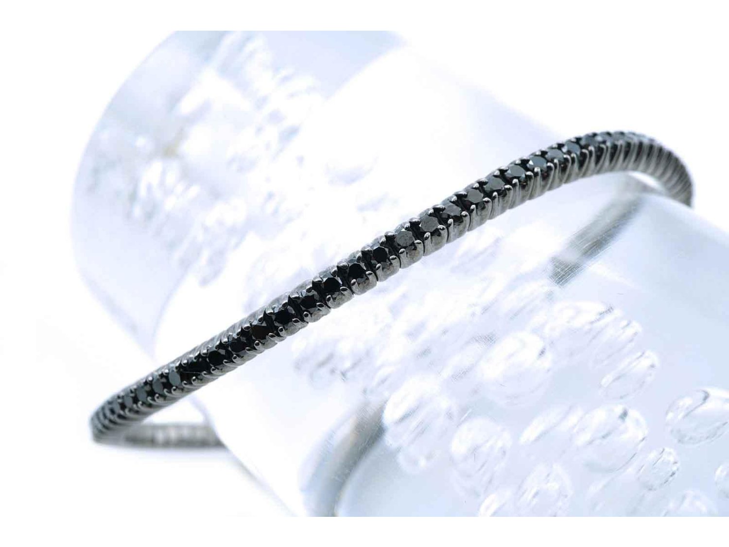 JARRETIERE bracciale elastico Tennis in oro bianco brunito 18Kt con diamanti neri ct 2.40. NUOVO!