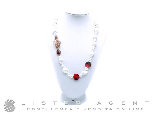 MARIA SOLE collana in argento 925 placcato oro con perle barocche e tonde e quarzi striati e pavè di qurzi taglio tondo briolè. NUOVA!