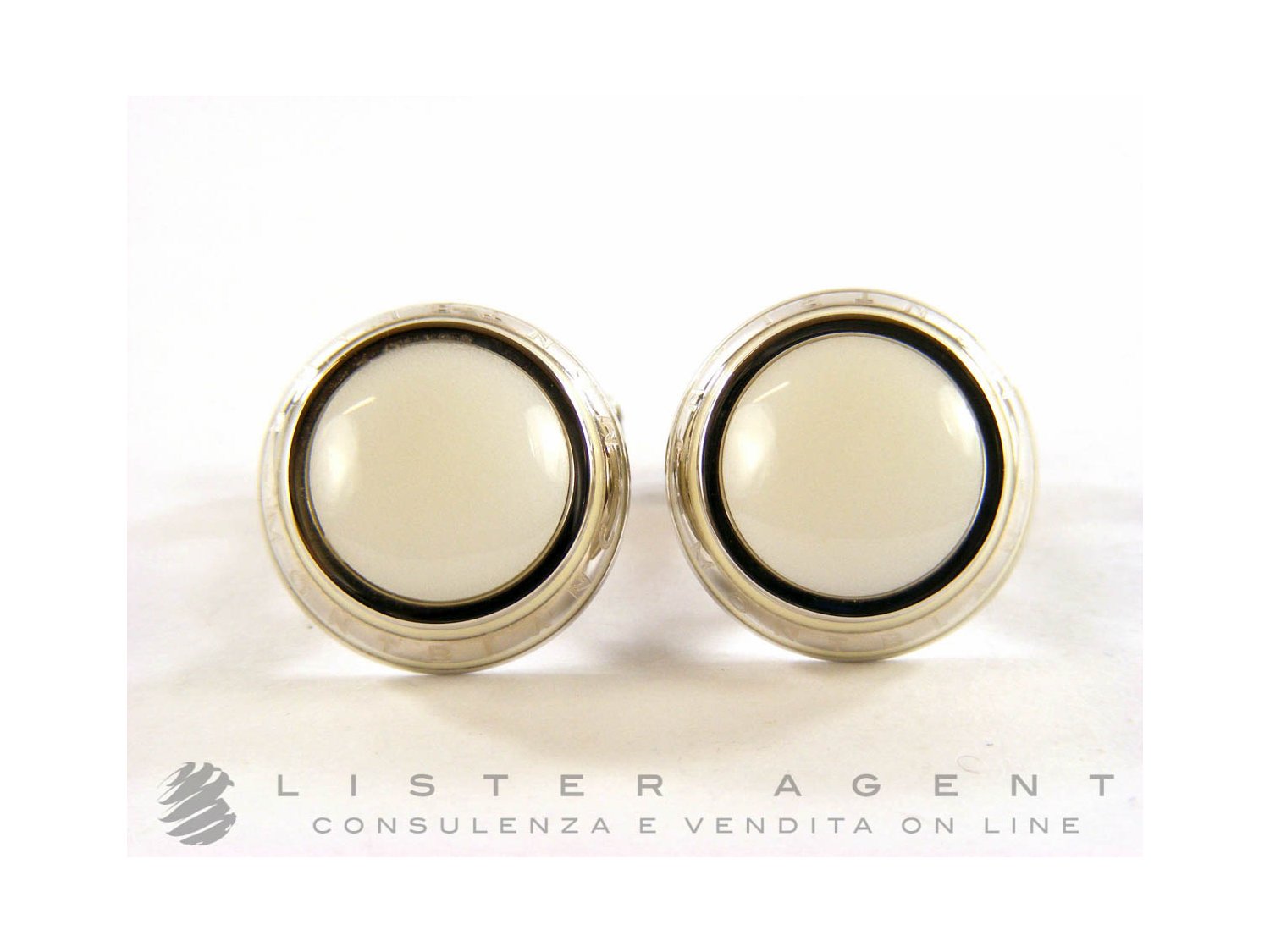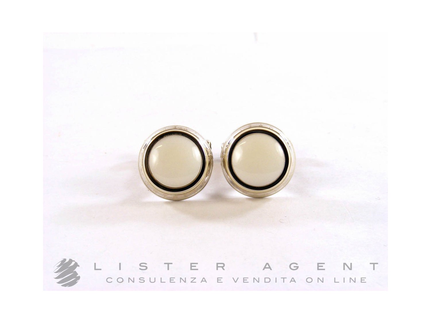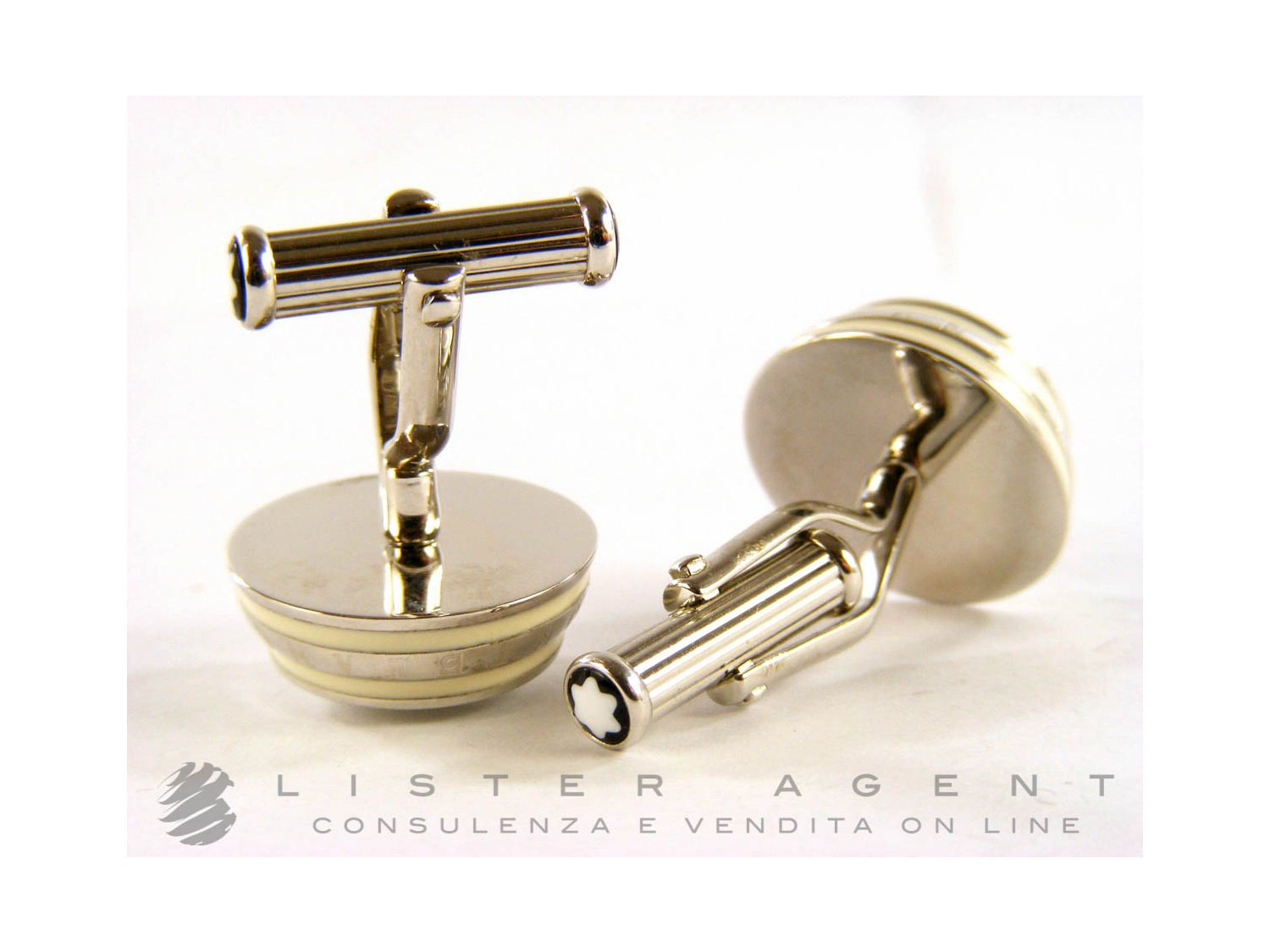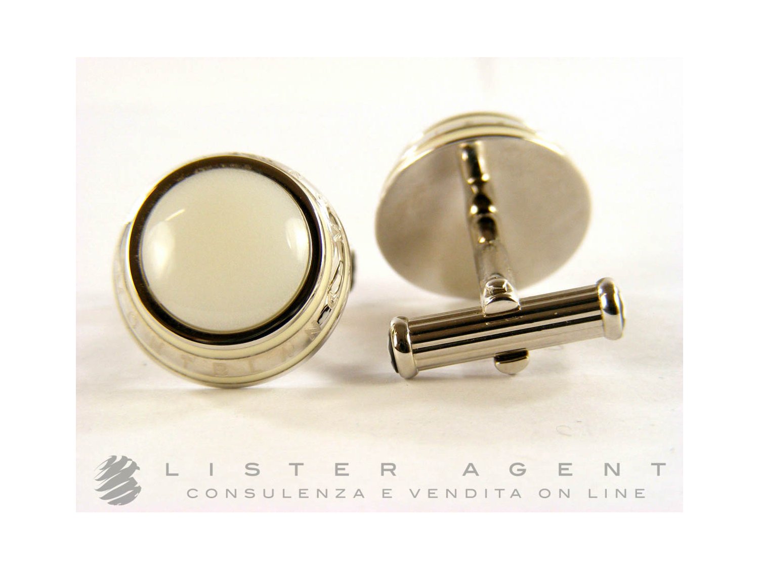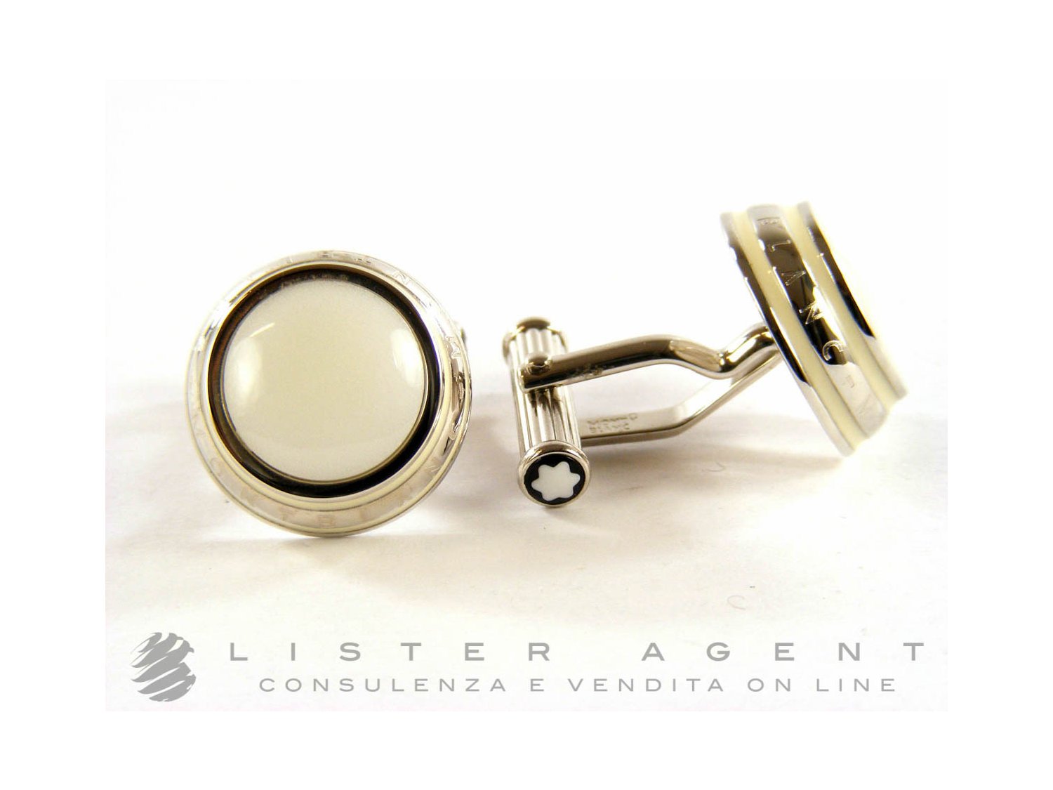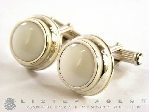 MONTBLANC cufflinks in steel with white agate and enamel Ref. 104498. NEW!
